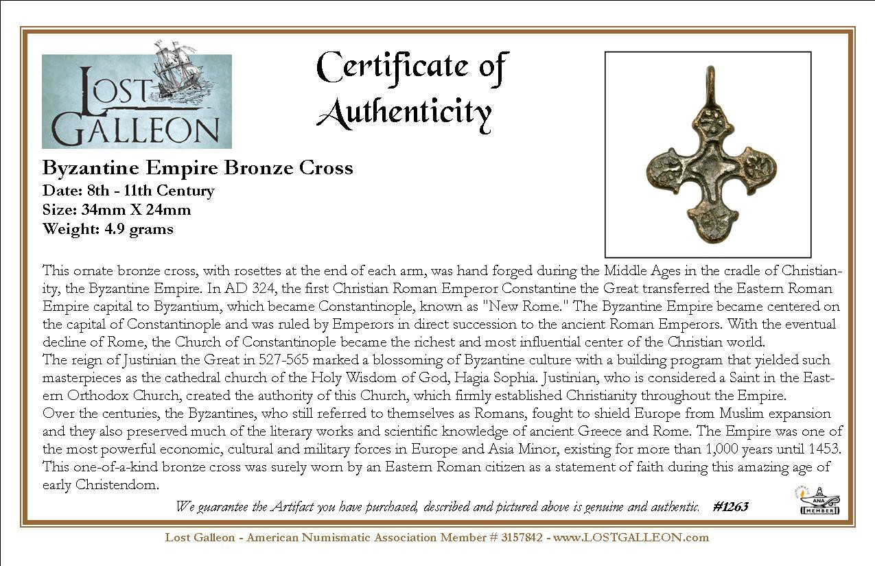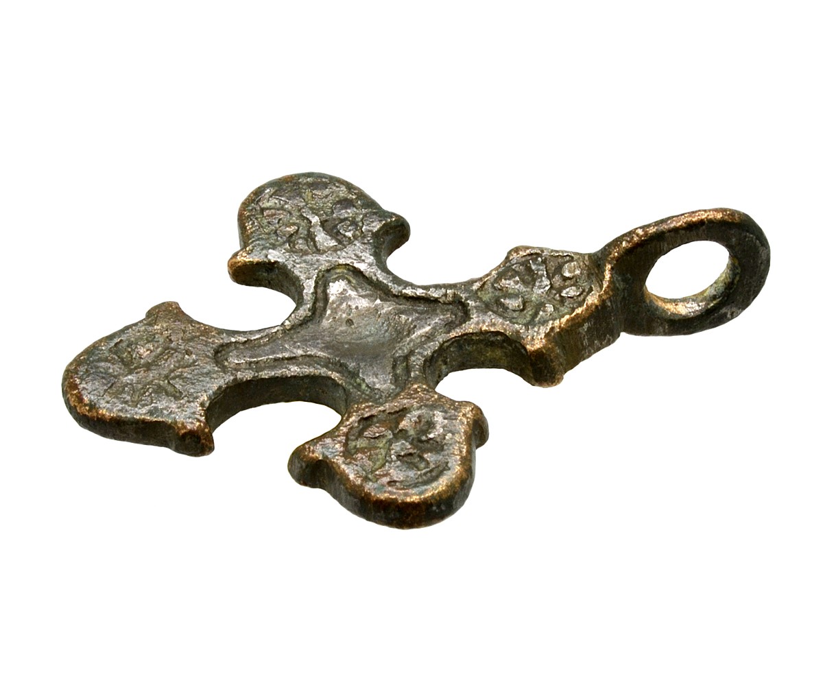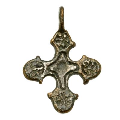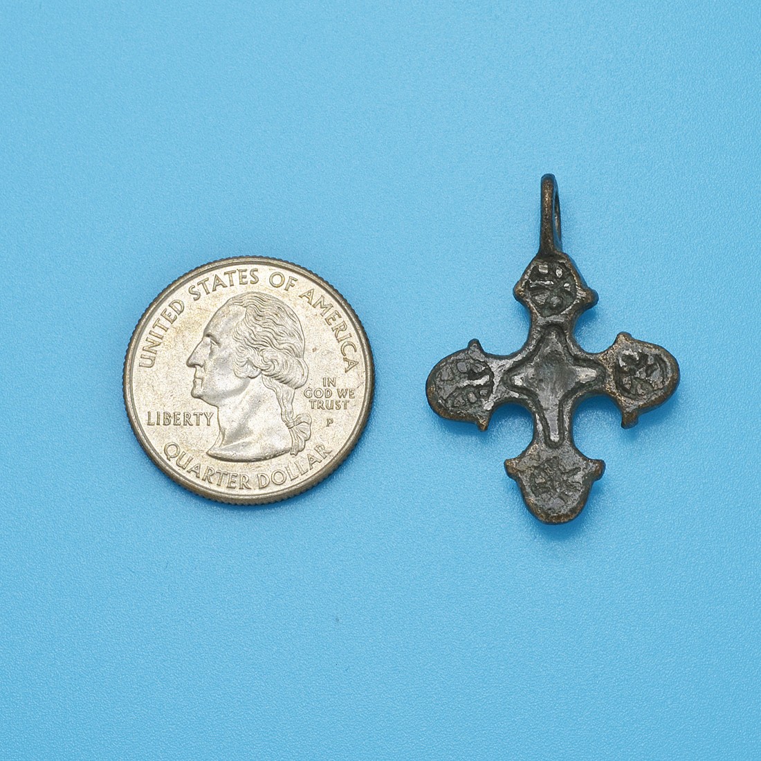 Over the centuries, the Byzantines, who still referred to themselves as Romans, fought to shield Europe from Muslim expansion and they also preserved much of the literary works and scientific knowledge of ancient Greece and Rome. The Empire was one of the most powerful economic, cultural and military forces in Europe and Asia Minor, existing for more than 1,000 years until 1453. This one-of-a-kind bronze cross was surely worn by an Eastern Roman citizen as a statement of faith during this amazing age of early Christendom.