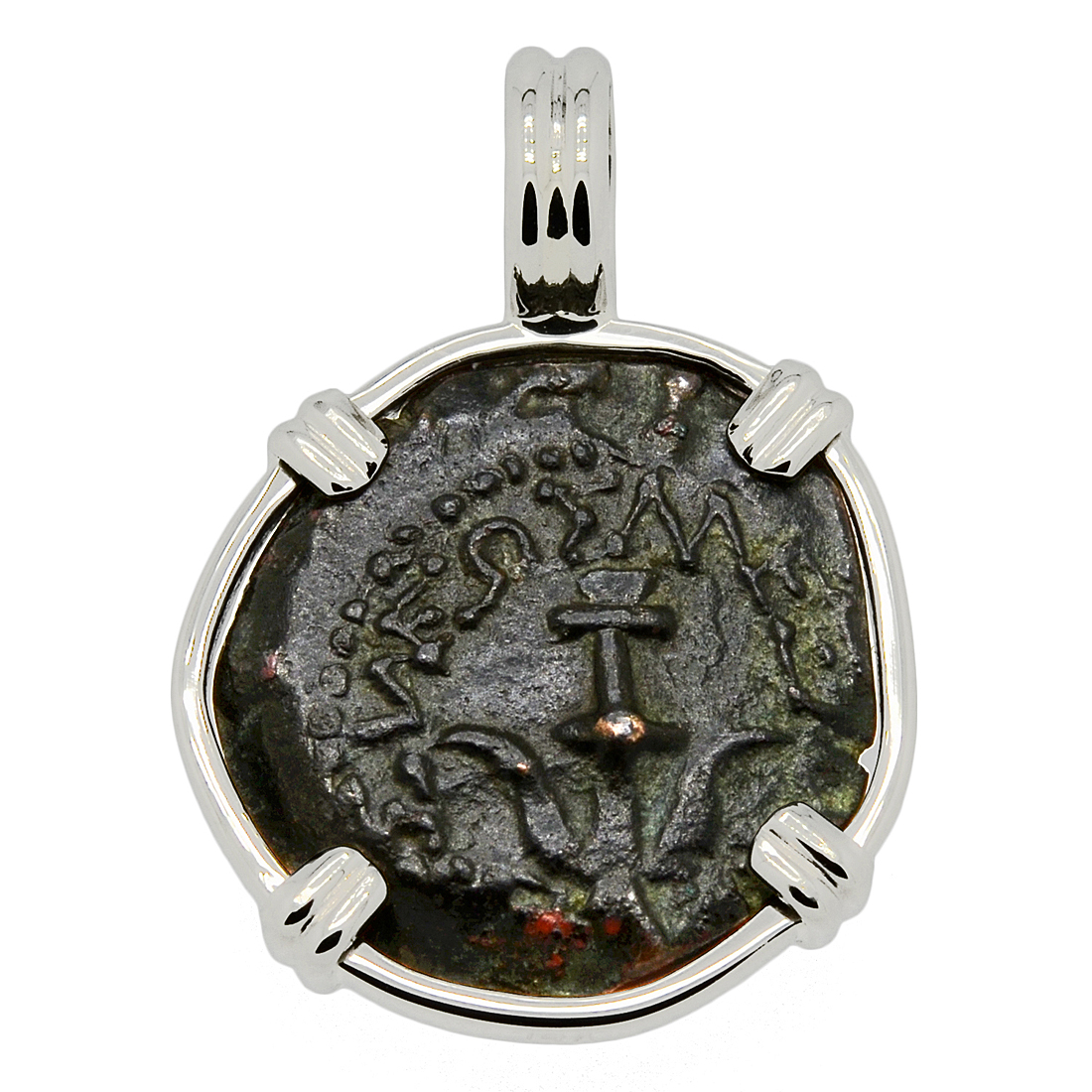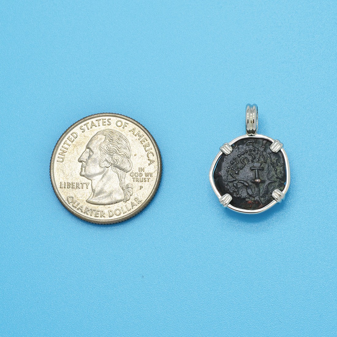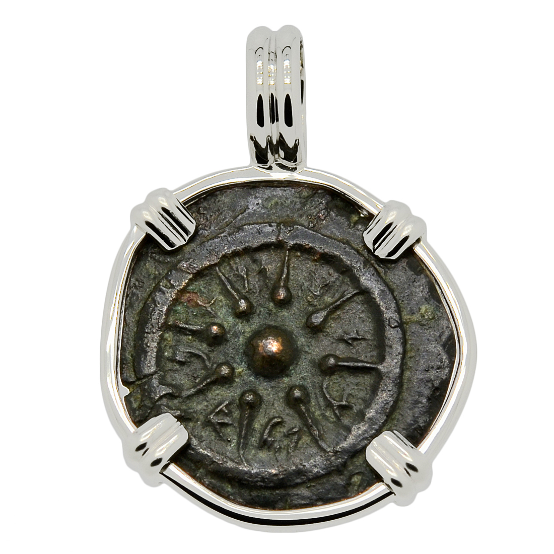 • Bronze Prutah Coin in 14k White Gold Pendant, Weight 4g