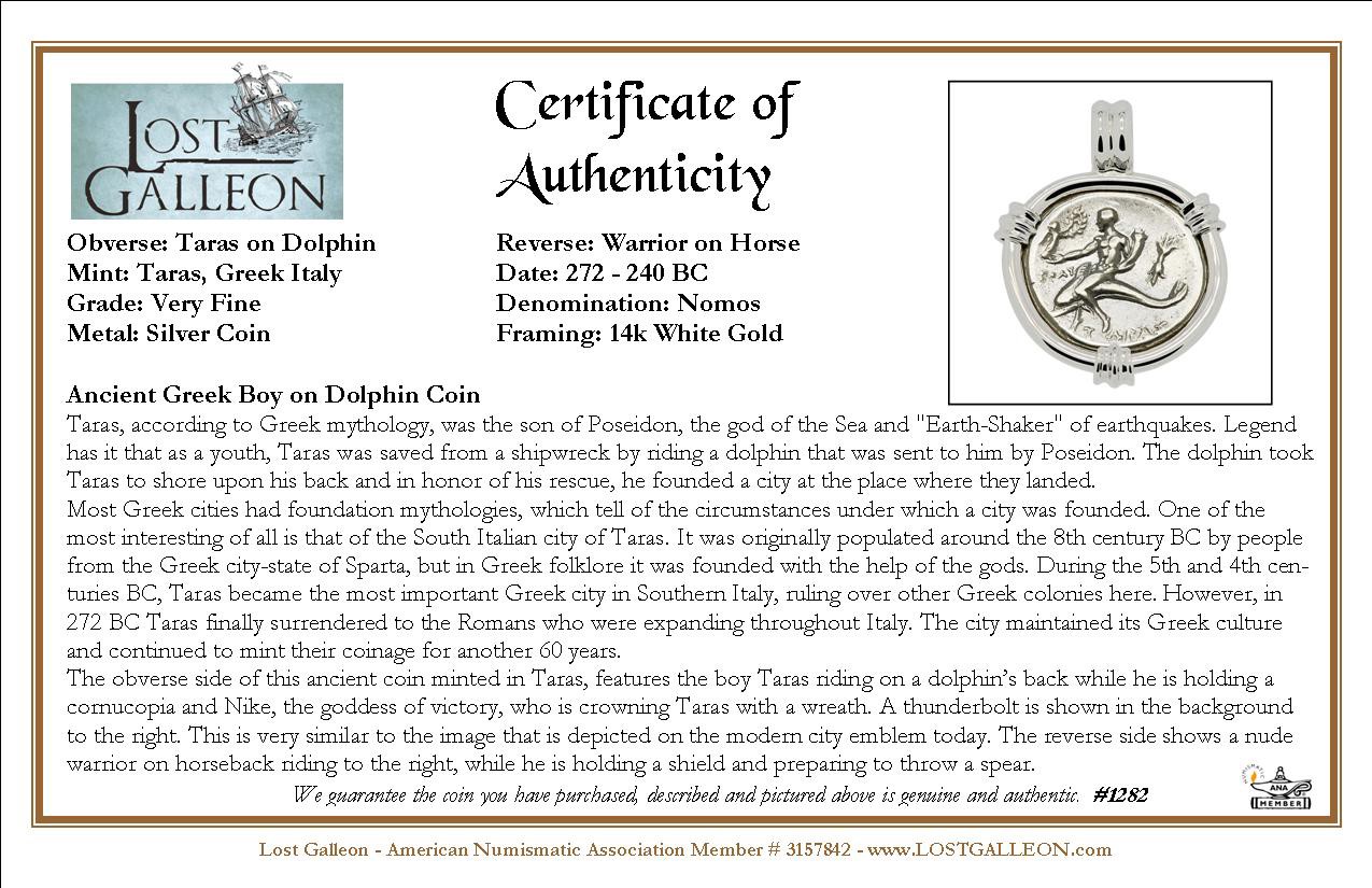 Most Greek cities had foundation mythologies, which tell of the circumstances under which a city was founded. One of the most interesting of all is that of the South Italian city of Taras. It was originally populated around the 8th century BC by people from the Greek city-state of Sparta, but in Greek folklore it was founded with the help of the gods. During the 5th and 4th centuries BC, Taras became the most important Greek city in Southern Italy, ruling over other Greek colonies here. However, in 272 BC Taras finally surrendered to the Romans who were expanding throughout Italy. The city maintained its Greek culture and continued to mint their coinage for another 60 years.