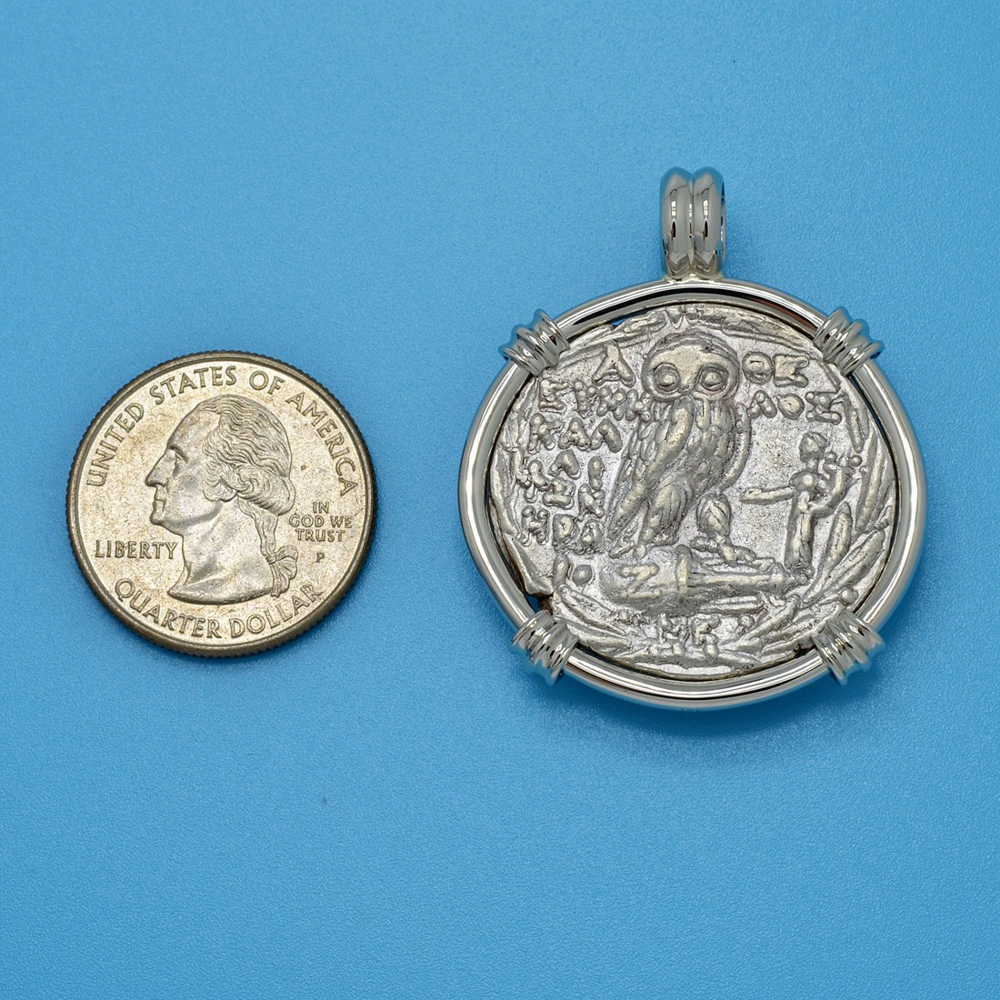 This coin was minted during the 2nd century BC in the historic city of Athens. A center for the arts, learning and philosophy, Athens was the cradle of western civilization and the birthplace of democracy in 508 BC. Over the following centuries, the Athenian tetradrachm was widely used in transactions throughout the ancient Greek world. Athens silver mines provided the bullion, the most well-known were the mines of Laurium. By 146 BC, ancient Greece became a province of the expanding Roman Republic. However, Athens remained a semi-autonomous city and continued to mint their tetradrachms until 42 BC.