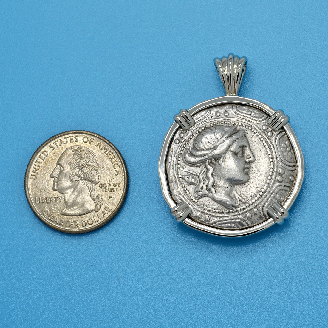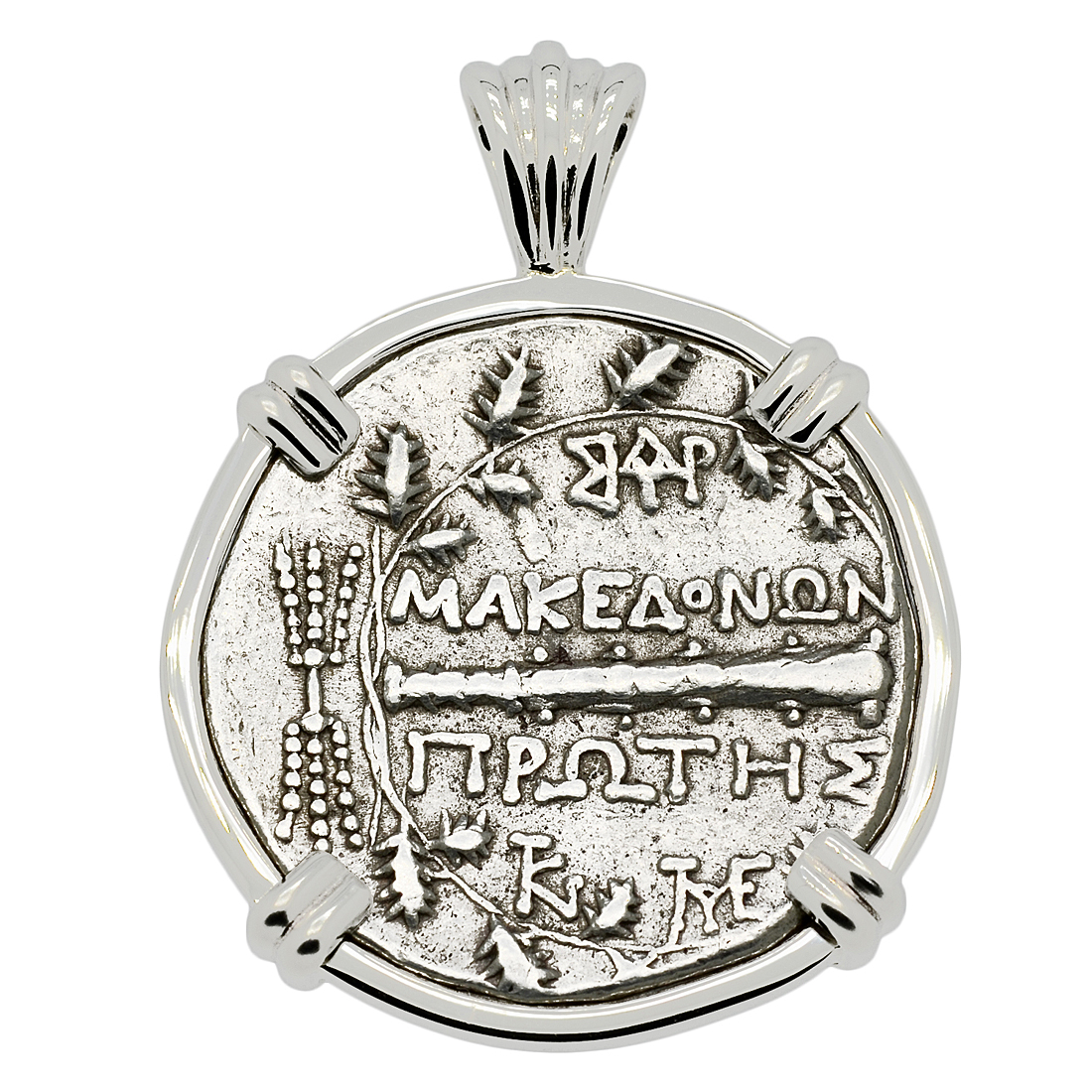 The reverse side of this coin depicts a club in the center with the Macedon inscription above, all within an oak wreath and a thunderbolt to the left. This coin was minted in the city of Amphipolis, which was founded by the Athenians in 436 BC as an outpost to protect their mining interests in the north. The city managed to maintain its relative independence until 357 BC, when Amphipolis surrendered to Philip II, King of Macedon and father of Alexander the Great. Amphipolis is where Alexander prepared for future military campaigns and with his conquests over the Persian Empire, Macedonia became the most powerful state in the world. Two centuries later, after the Battle of Pydna in 168 BC, Macedonia became a protectorate of the Roman Republic.