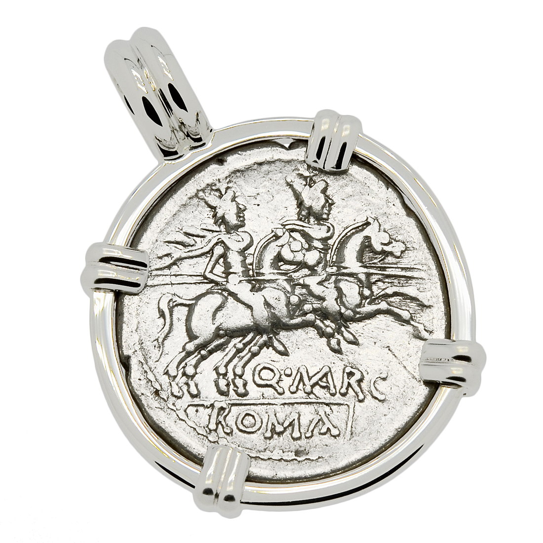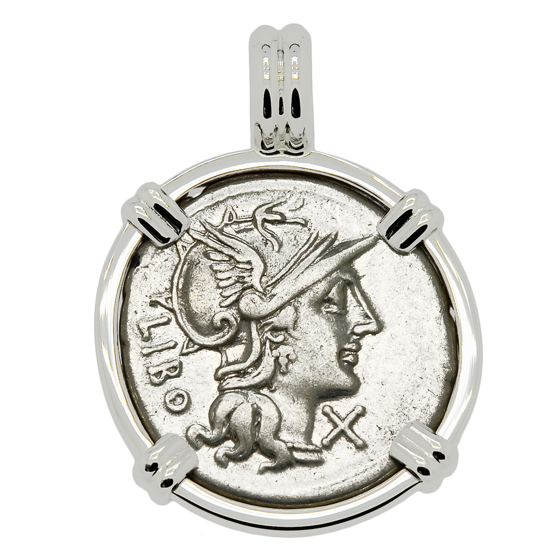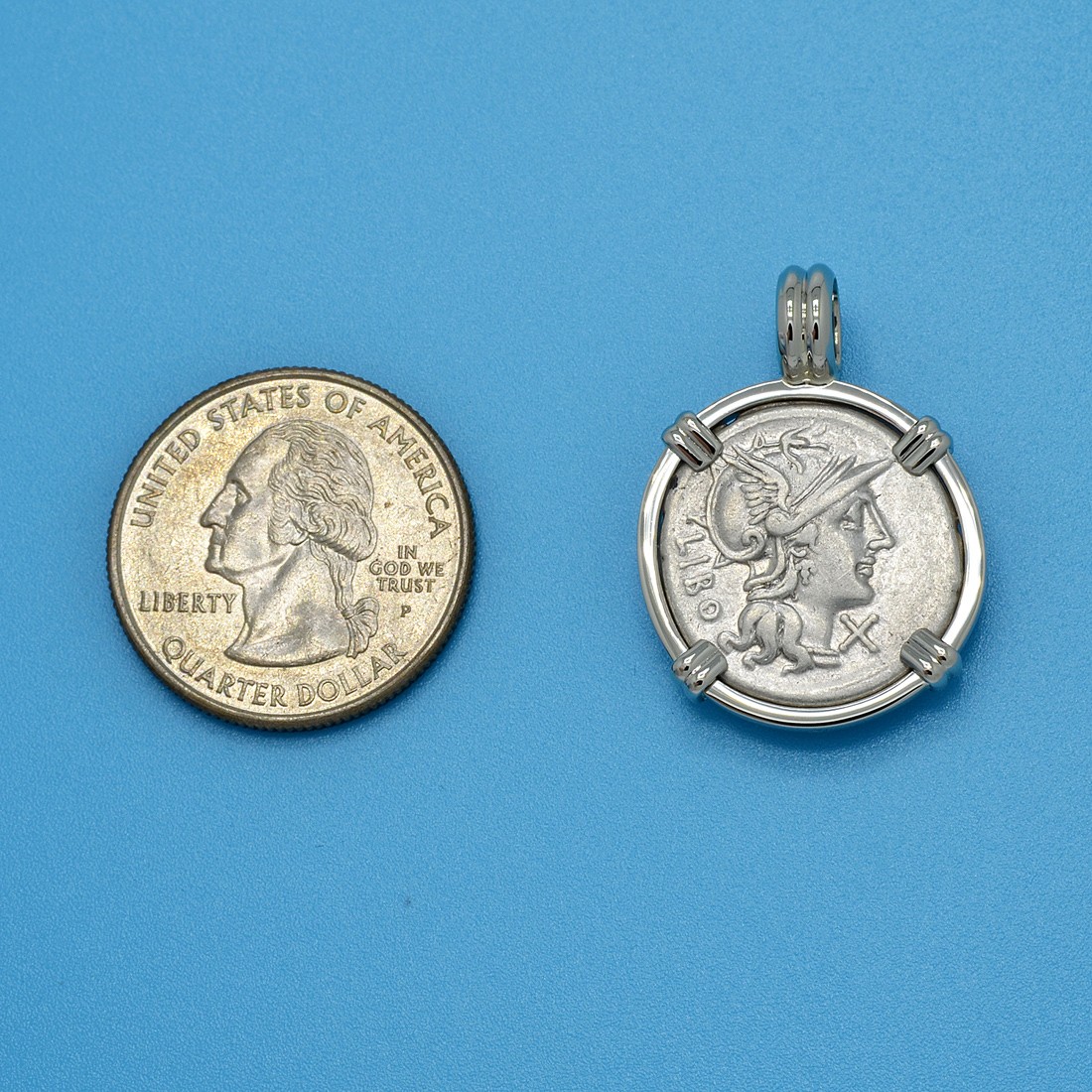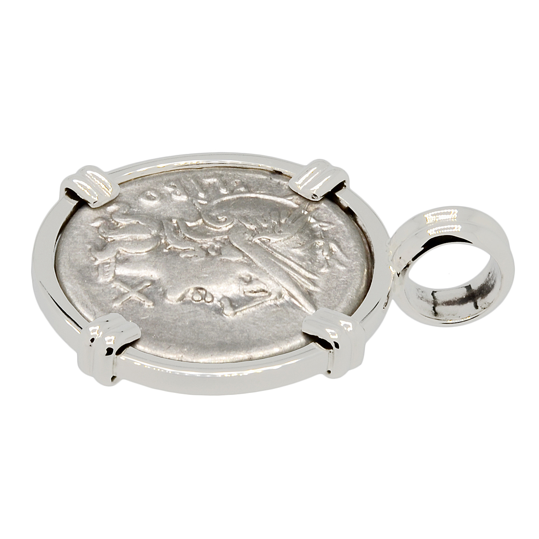 • Silver Denarius Coin in 14k White Gold Pendant, Weight 7.3g