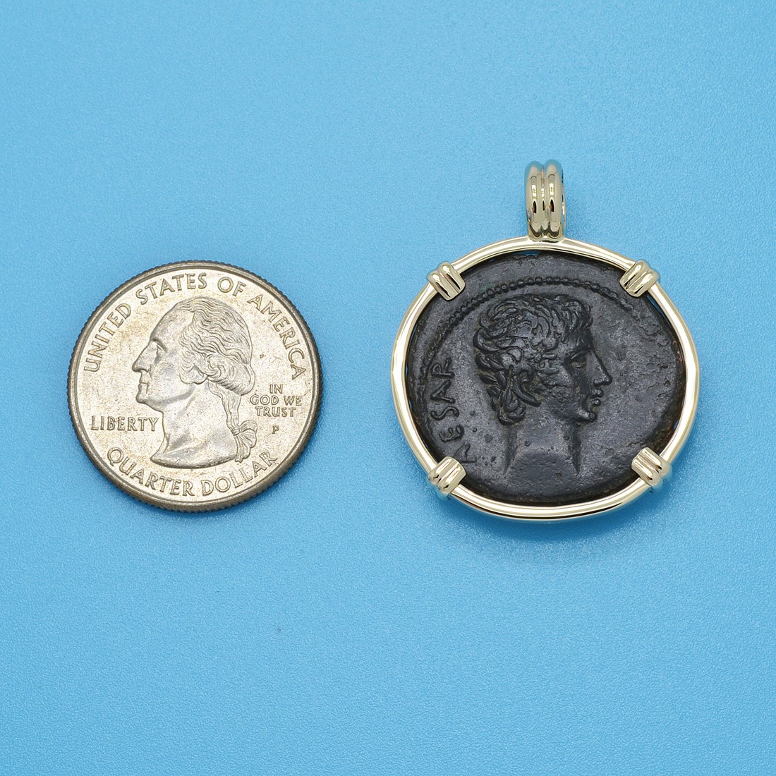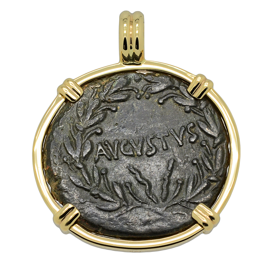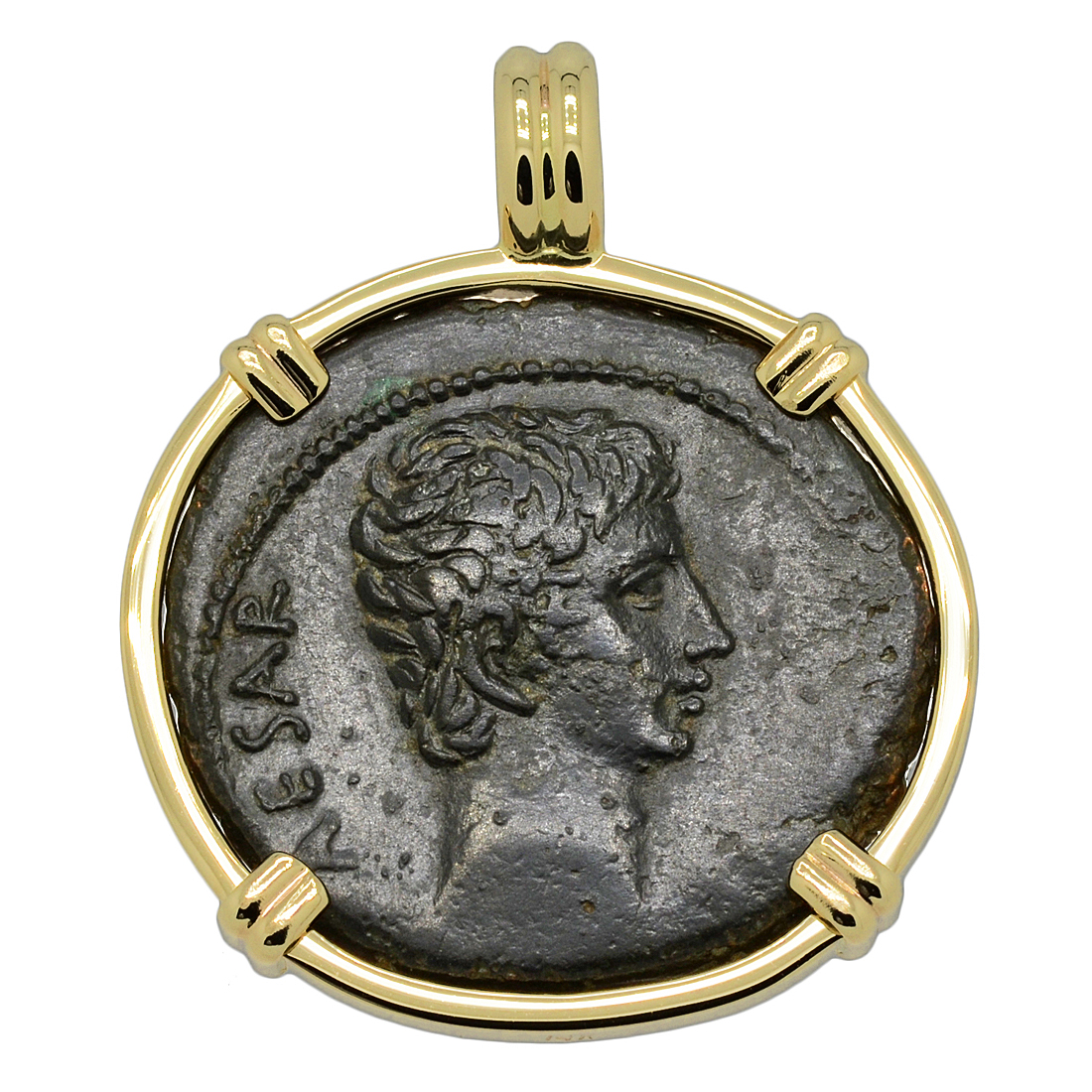 This coin was minted during the rule of Caesar Augustus in the historic eastern Roman city of Antioch, which was located in present-day southern Turkey. Augustus favored this city and had a Roman type forum along with a great temple to Jupiter built in Antioch. The obverse side of this ancient Antioch bronze coin features the head of Augustus with CAESAR to the left. The reverse side shows the legend AVGVSTVS within a wreath.