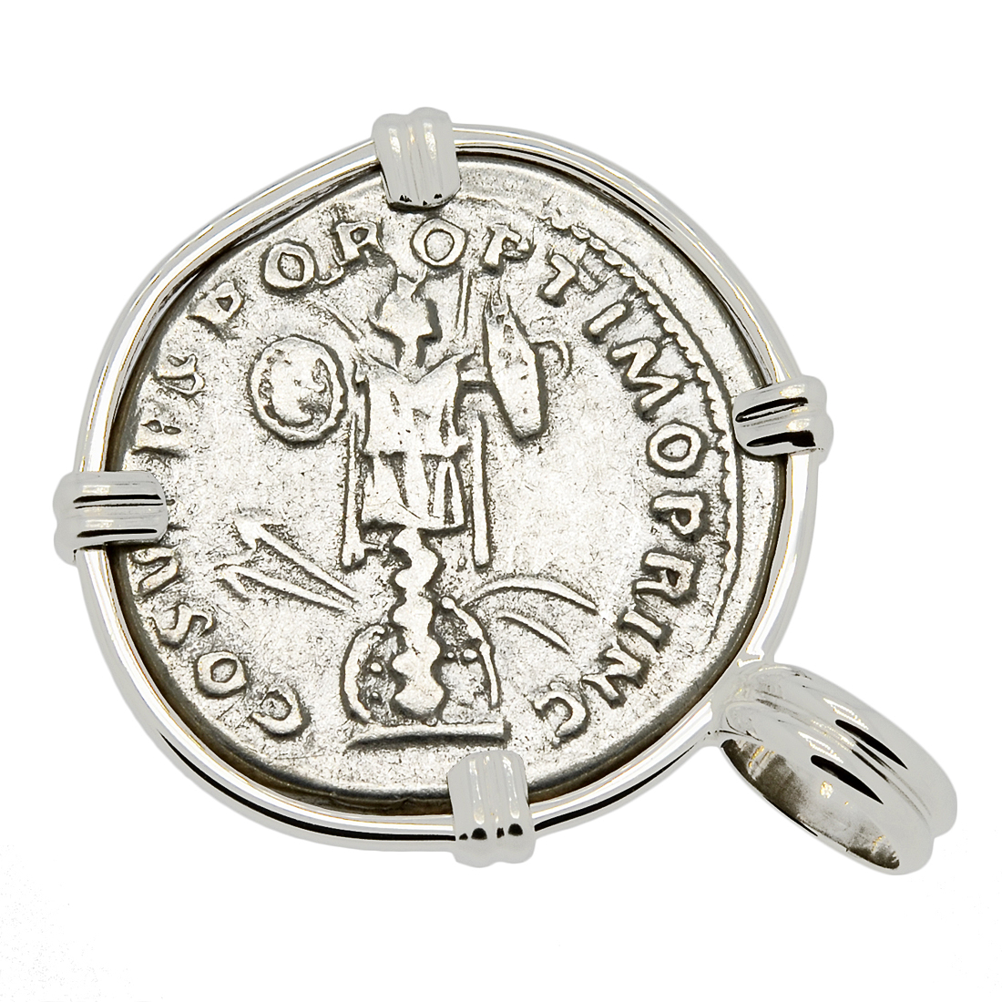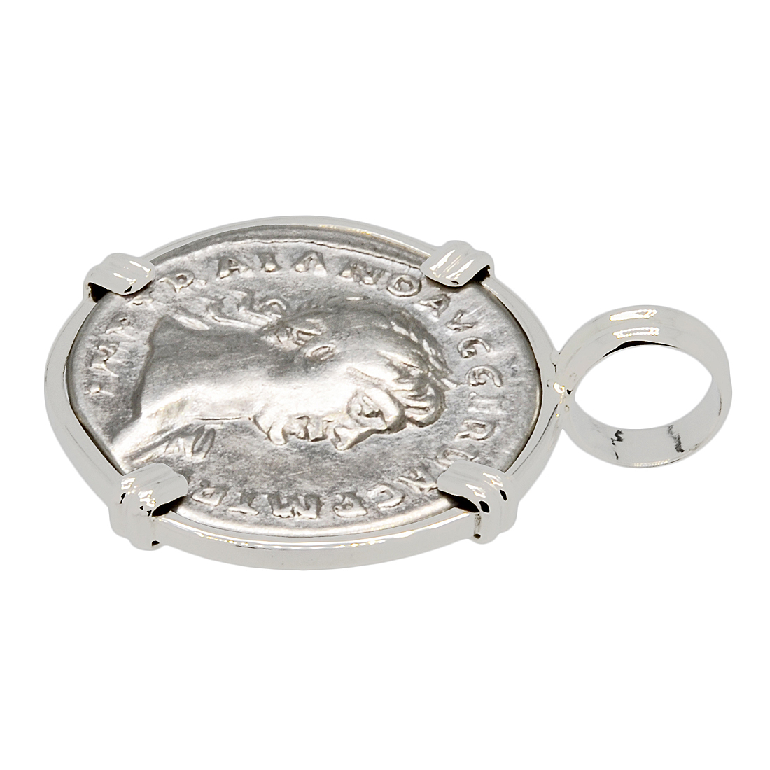 • Silver Denarius Coin in 14k White Gold Pendant, Weight 4.5g
