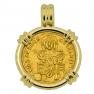 This solidus coin was minted in near pure gold during the rule of Basil I "The Macedonian", who was the Byzantine Emperor of Armenian origin from 867 to 886. Born a simple peasant in Thrace, he rose in the Imperial Court and usurped the throne from Michael III. Despite his humble origins, he showed great ability in running the affairs of state, leading a revival of imperial power and a renaissance of Byzantine culture. Basil I was one of the greatest Byzantine Emperors and the Macedonian Dynasty he founded ruled over what is regarded as the Eastern Roman Empire's most glorious and prosperous era.