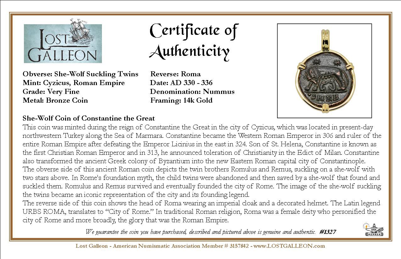 This coin was minted during the reign of Constantine the Great in the city of Cyzicus, which was located in present-day northwestern Turkey along the Sea of Marmara. Constantine became the Western Roman Emperor in 306 and ruler of the entire Roman Empire after defeating the Emperor Licinius in the east in 324. Son of St. Helena, Constantine is known as the first Christian Roman Emperor and in 313, he announced toleration of Christianity in the Edict of Milan. Constantine also transformed the ancient Greek colony of Byzantium into the new Eastern Roman capital city of Constantinople.