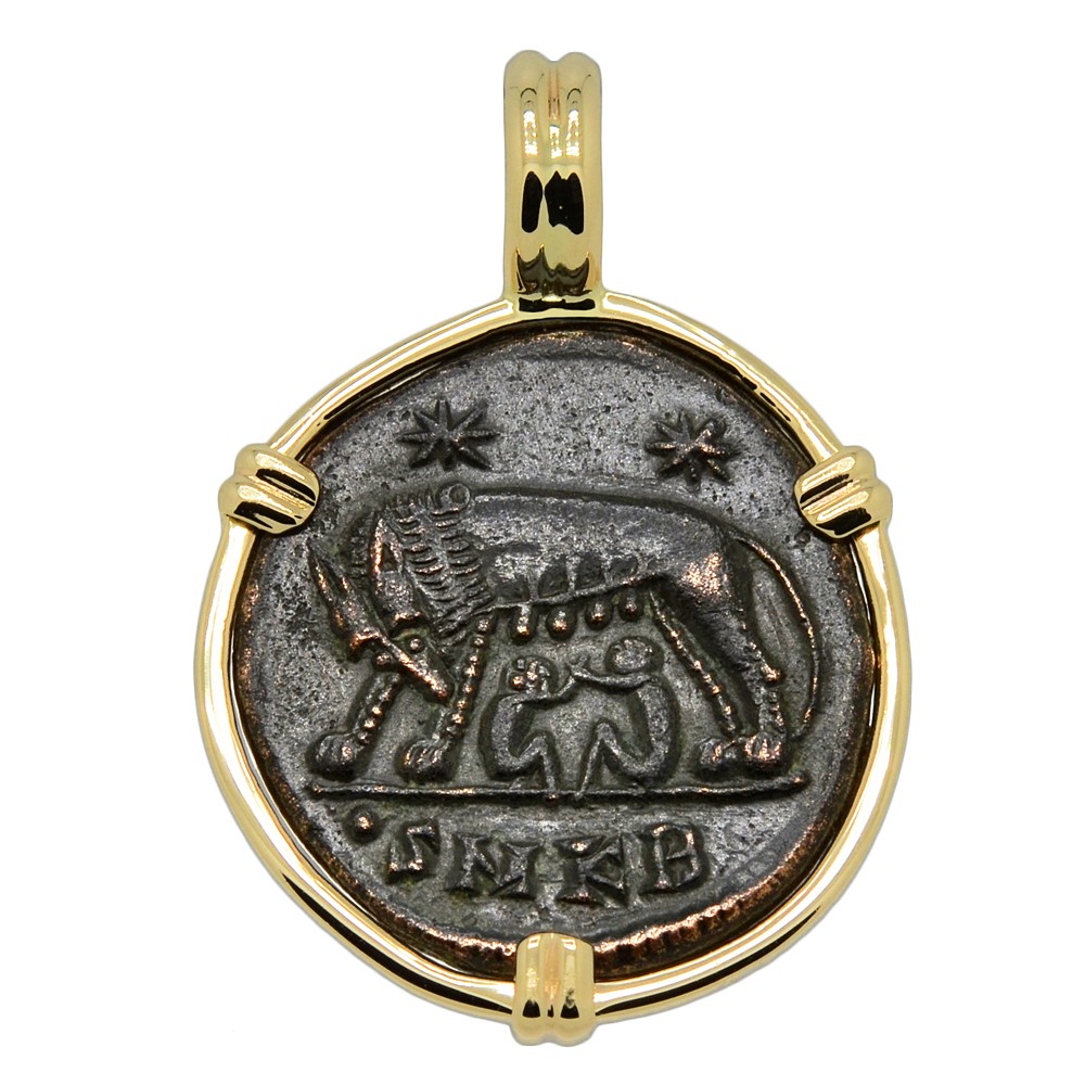 SOLD She Wolf and Roma Nummus Pendant. Please Explore Our Roman Pendants For Similar Items.