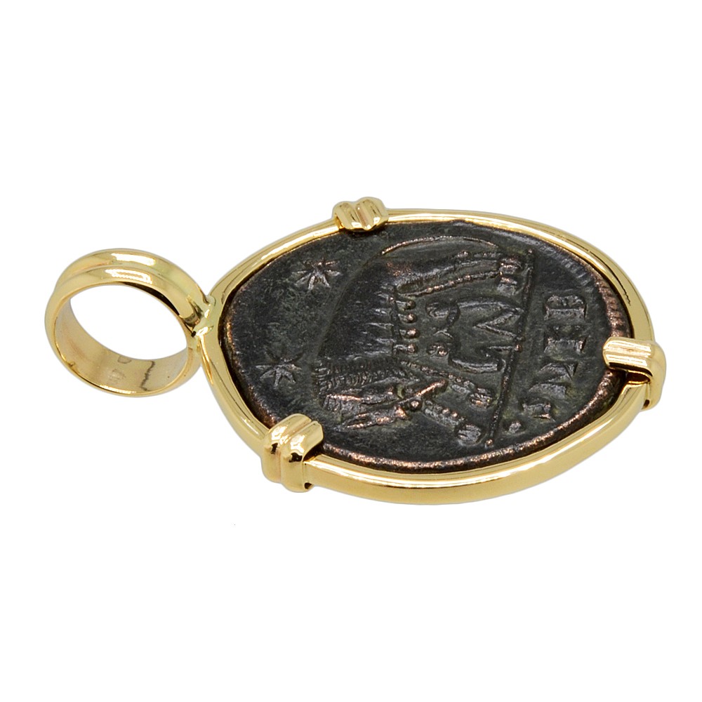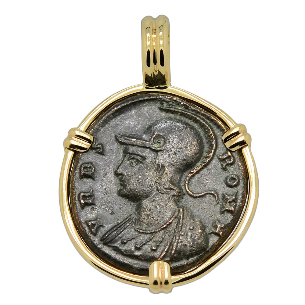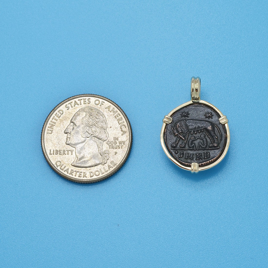 • Bronze Nummus Coin in 14k Gold Pendant, Weight 4g