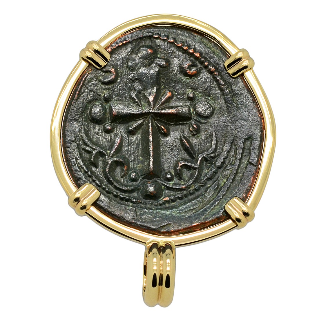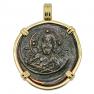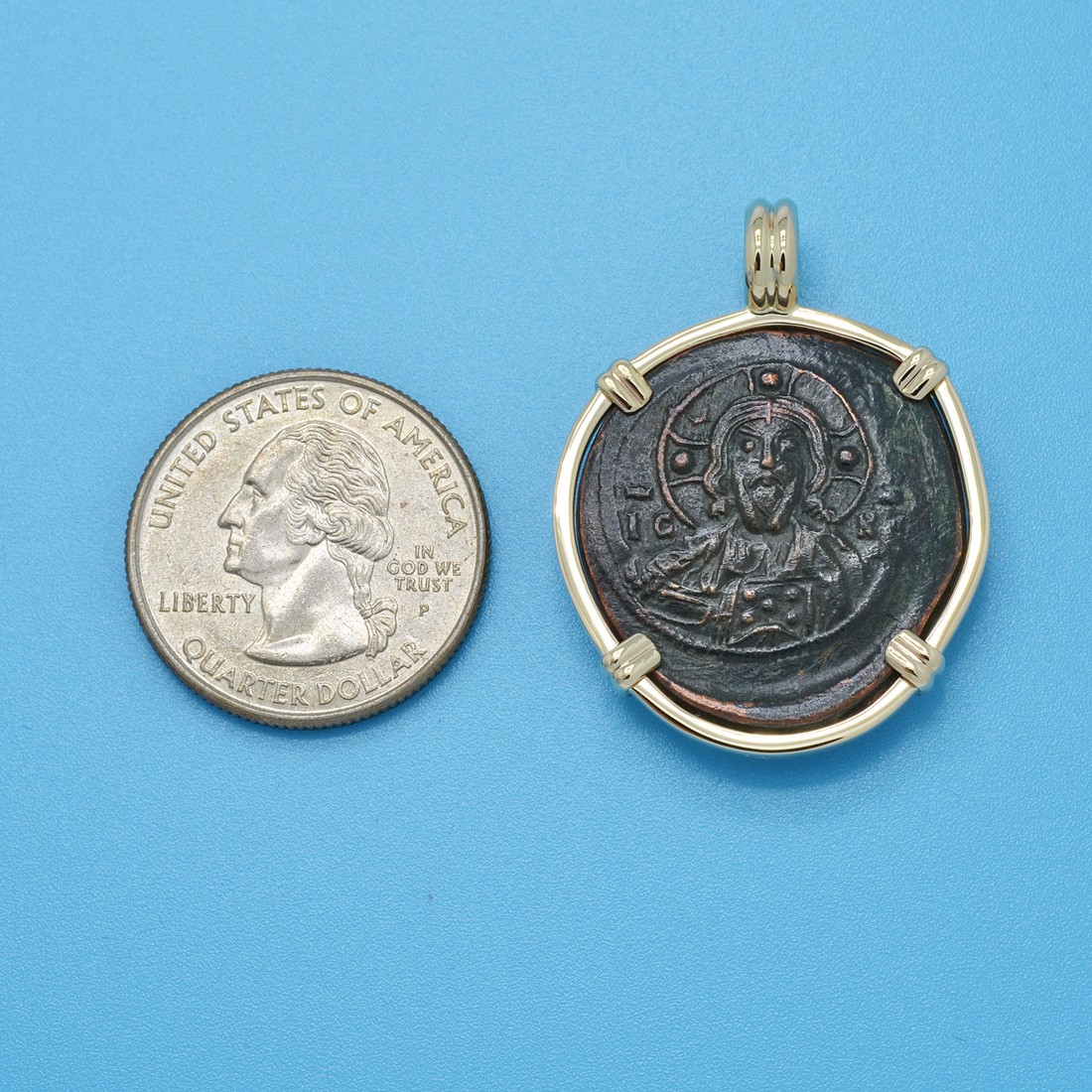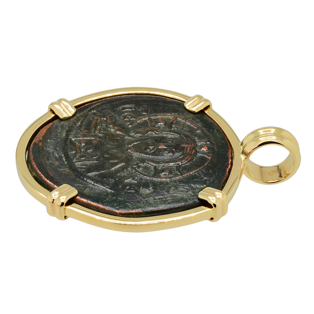 • Bronze Follis Coin in 14k Gold Pendant, Weight 10.85g