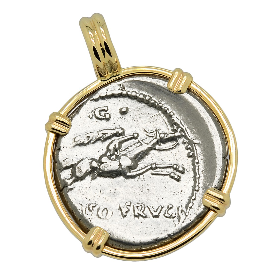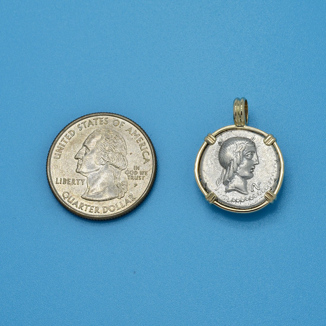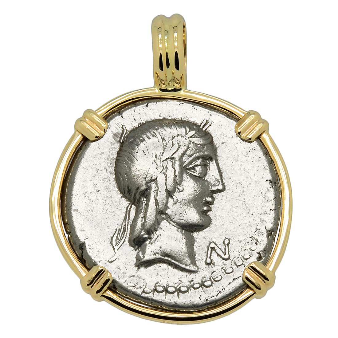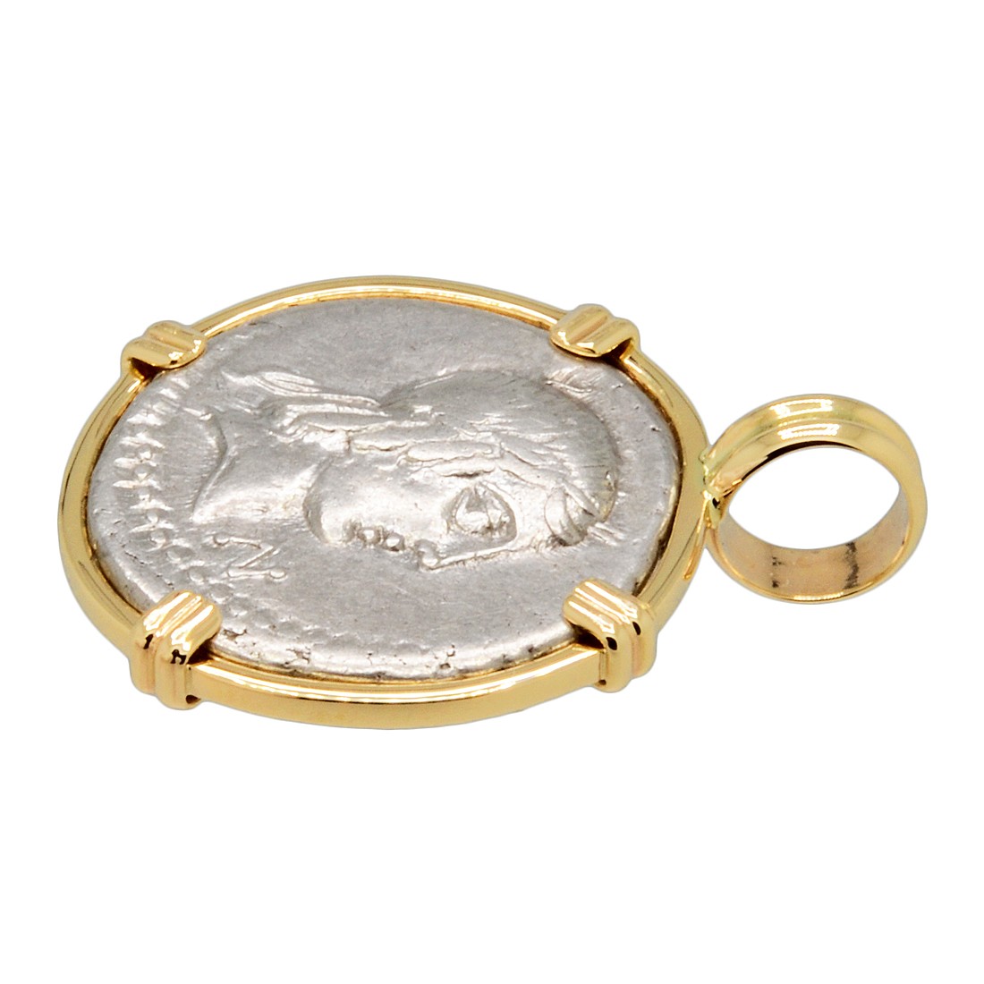 • Silver Denarius Coin in 14k Gold Pendant, Weight 5.3g