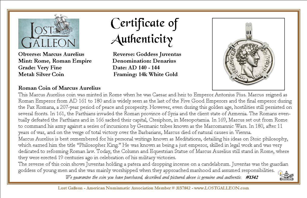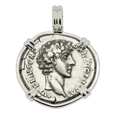 This Marcus Aurelius coin was minted in Rome when he was Caesar and heir to Emperor Antoninus Pius. Marcus reigned as Roman Emperor from AD 161 to 180 and is widely seen as the last of the Five Good Emperors and the final emperor during the Pax Romana, a 207-year period of peace and prosperity. However, even during this golden age, hostilities still persisted on several fronts. In 161, the Parthians invaded the Roman province of Syria and the client state of Armenia. The Romans eventually defeated the Parthians and in 166 sacked their capital, Ctesiphon, in Mesopotamia. In 169, Marcus set out from Rome to command his army against a series of incursions by Germanic tribes known as the Marcomannic Wars. In 180, after 11 years of war, and on the verge of total victory over the Barbarians, Marcus died of natural causes in Vienna.