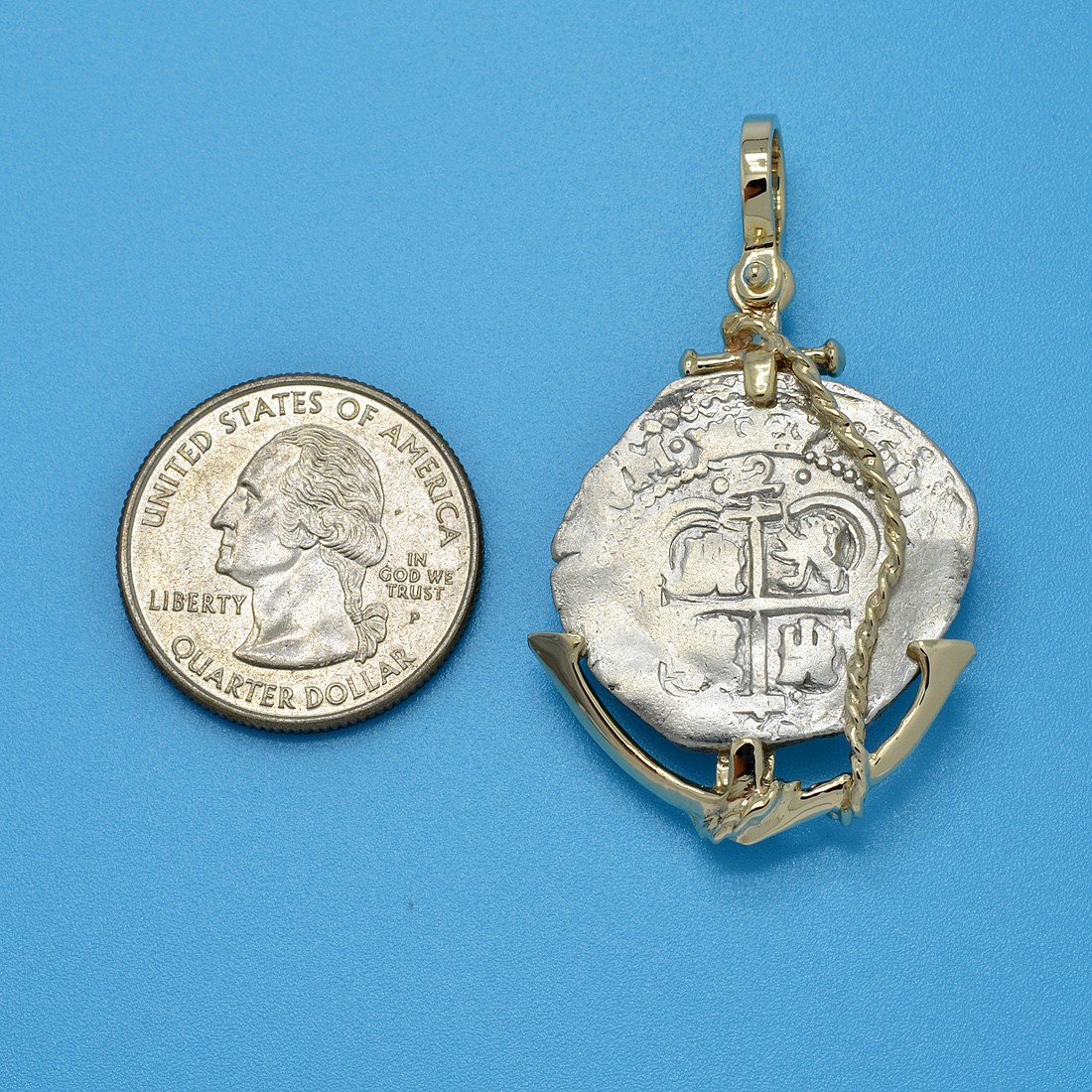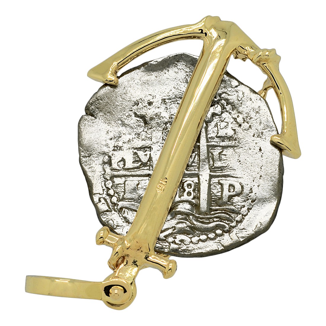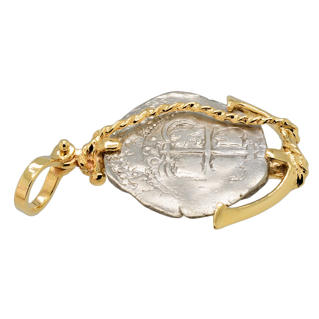 • Silver Coin in 14k Gold Anchor Pendant, Weight 14.1g