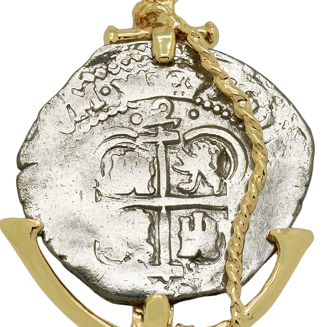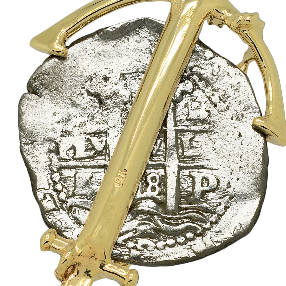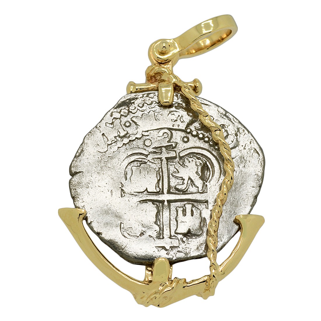 • Silver Coin in 14k Gold Anchor Pendant, Weight 14.1g