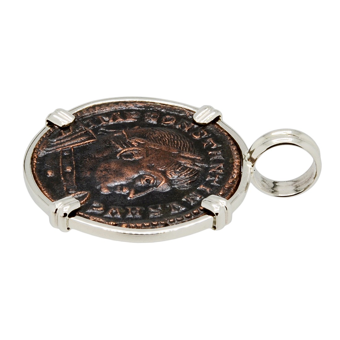 • Bronze Follis Coin in 14k White Gold Pendant, Weight 4g