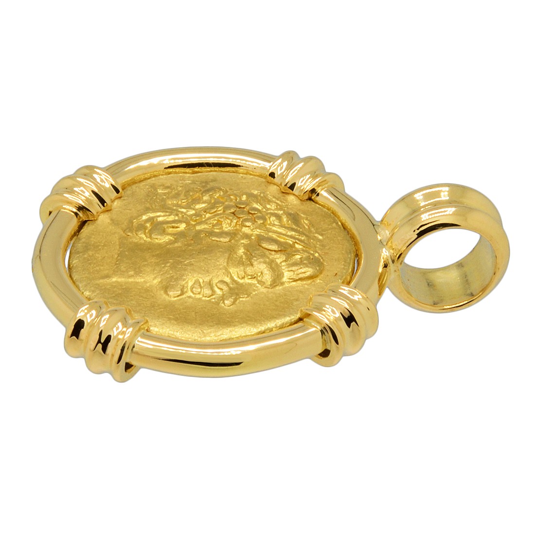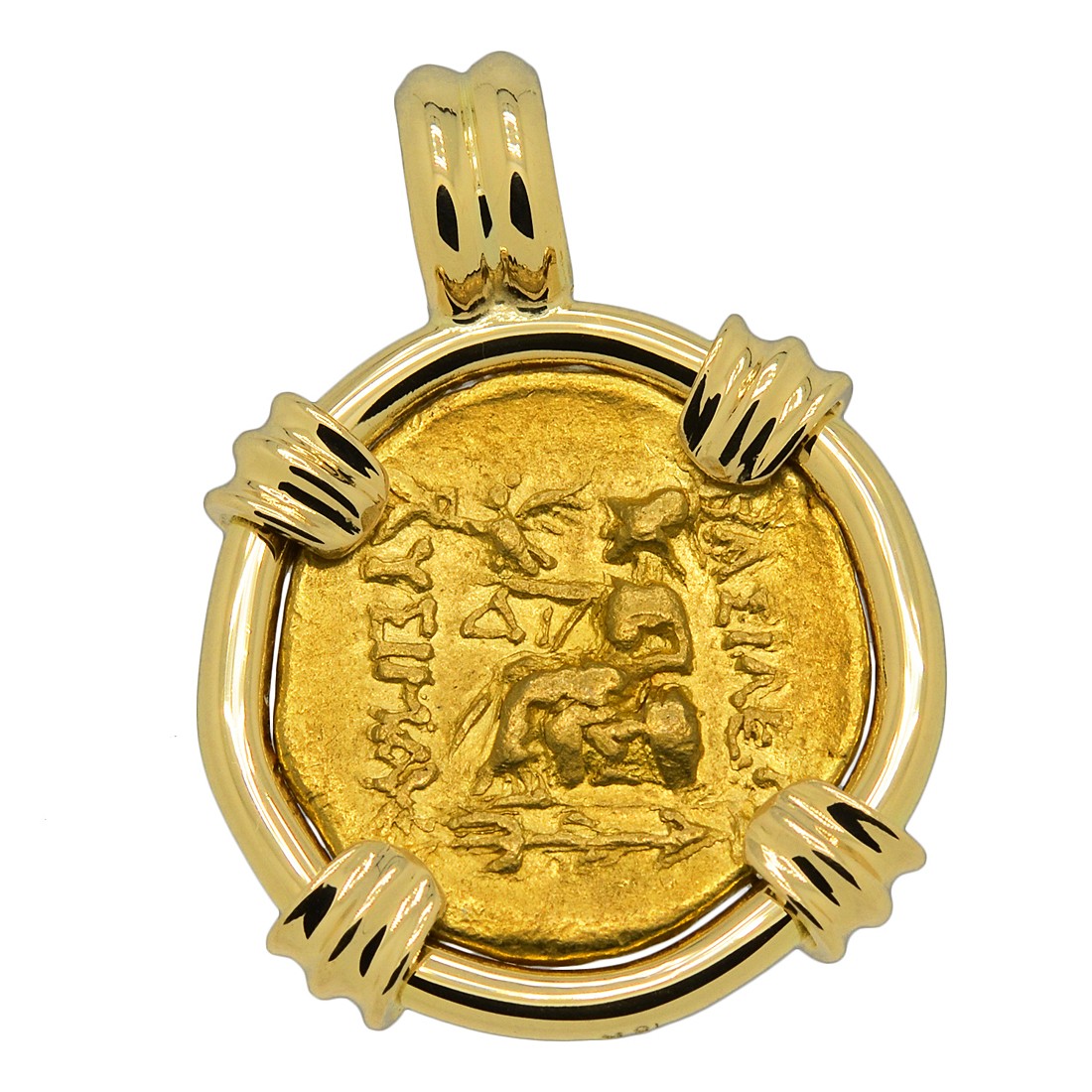 This gold coin was minted in the coastal Black Sea city of Istros during the rule of the Greek King Mithridates VI to pay his army during the 1st Mithradatic War against Rome. The obverse side features Alexander the Great, the most successful military commander of all time. In the 4th century BC, Alexander had overthrown the Persian King Darius III and conquered the entirety of his empire. Alexander's own empire in 323 BC stretched from the Adriatic Sea to Egypt and as far east as the Indus River in India. His legacy lived on long after him, ushering in centuries of Greek settlement and Hellenistic culture over distant areas.