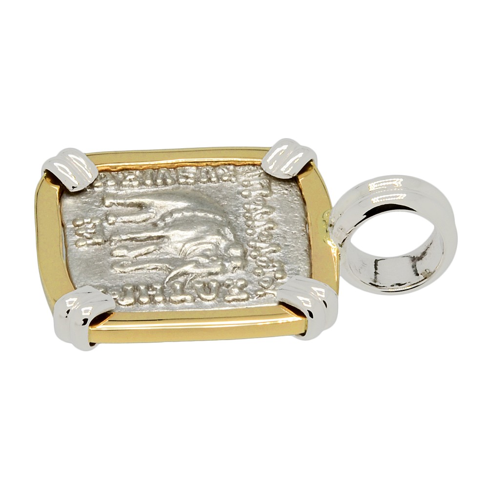This 2nd century BC silver coin was minted during the rule of Indo-Greek King Apollodotus I, whose name means “given by Apollo.” The Greek Kingdom of Bactria was founded during the mid-3rd century BC in the region of modern day Afghanistan, from the remnants of the conquests of Alexander the Great. As a general of King Demetrius I of Bactria, Apollodotus invaded Northwestern India in 180 BC. With this conquest, Apollodotus became the first Indo-Greek King (180 - 160 BC) who ruled in India only and therefore the founder of the proper Indo-Greek Kingdom.