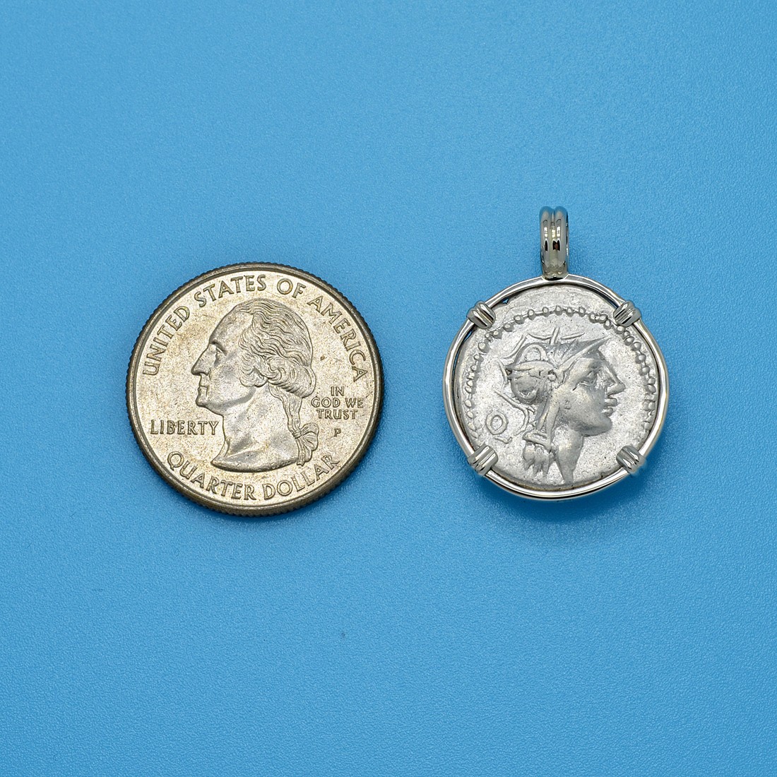 The Roman Republic introduced the denarius coin in 211 BC. It soon became the principal denomination in the Roman Republic monetary system and was the equivalent of around two days’ pay for a Roman Soldier.