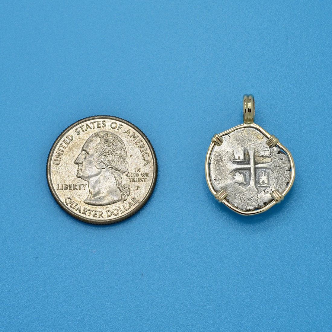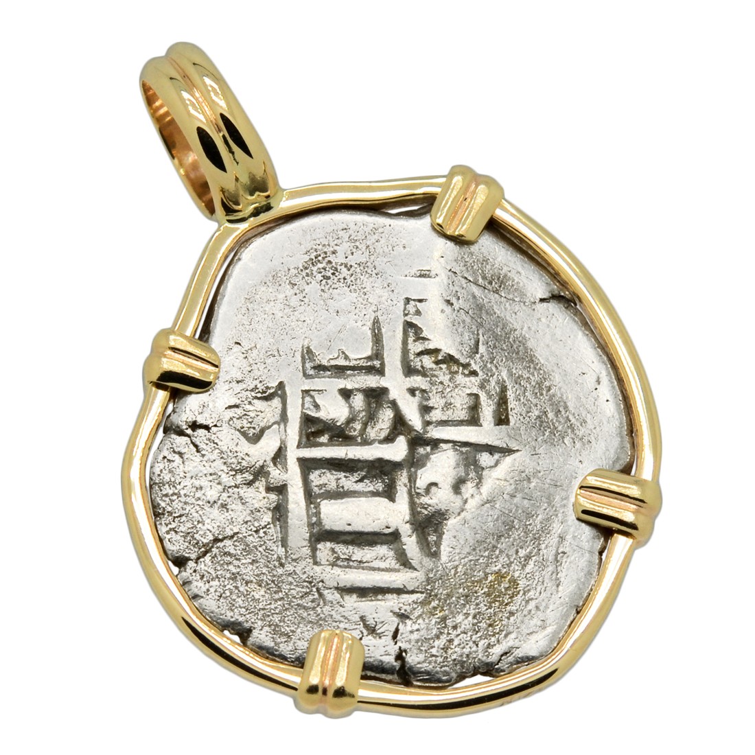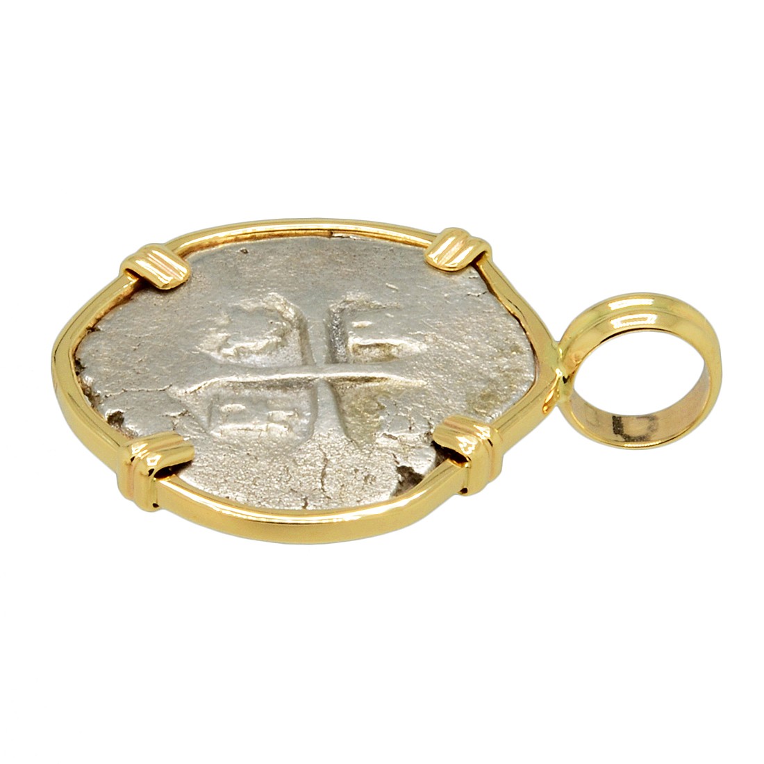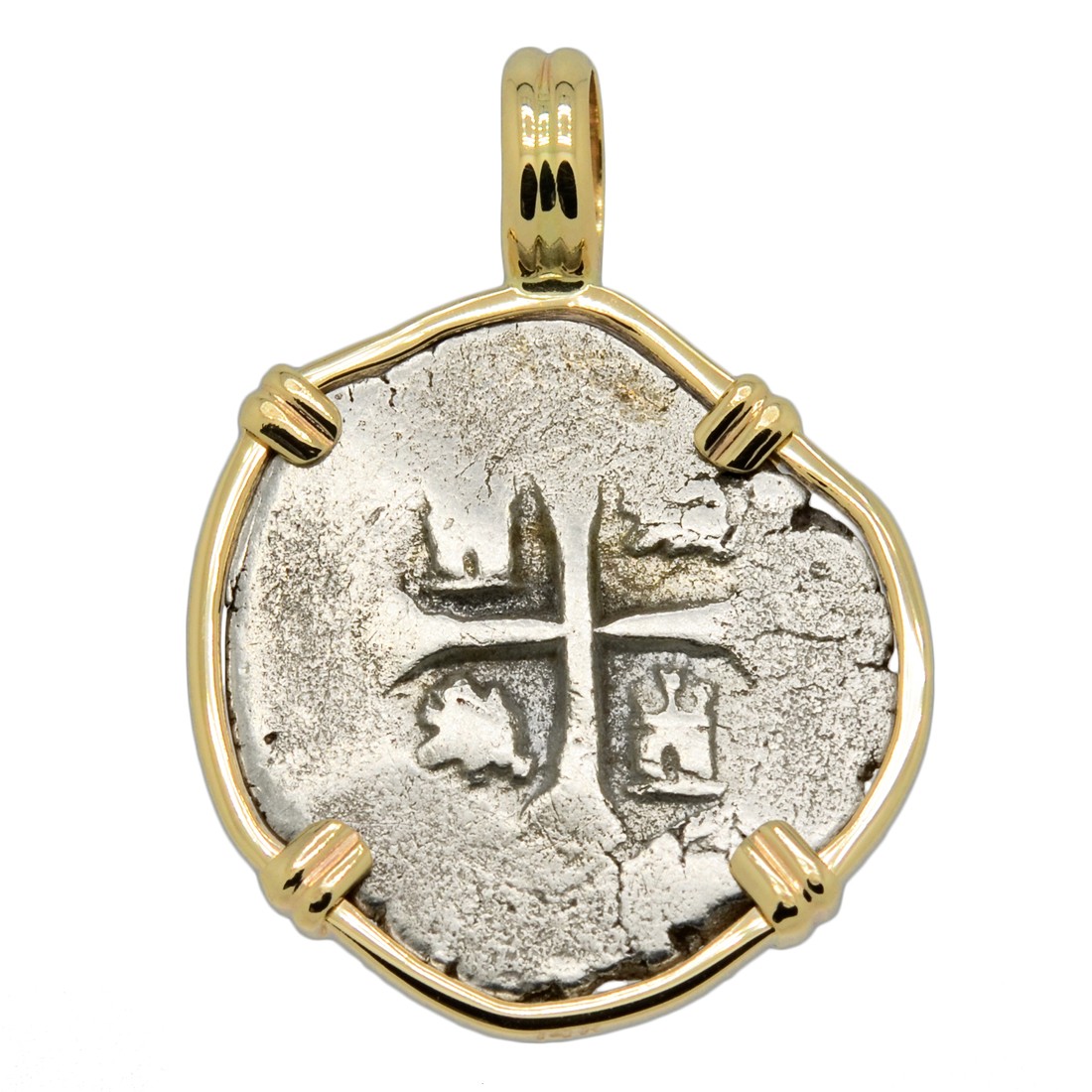 Spanish coins, known as "cobs", that circulated in this epic era were hand struck from dies and cut to weight. Minted in five denominations in silver, the largest was the eight reales, famous in the colonies and among pirates as a “piece of eight.” The other denominations were four reales, two reales, one real and one-half real. Cob coinage with their unusual shapes are all unique and each is a one-of-a-kind piece of history.