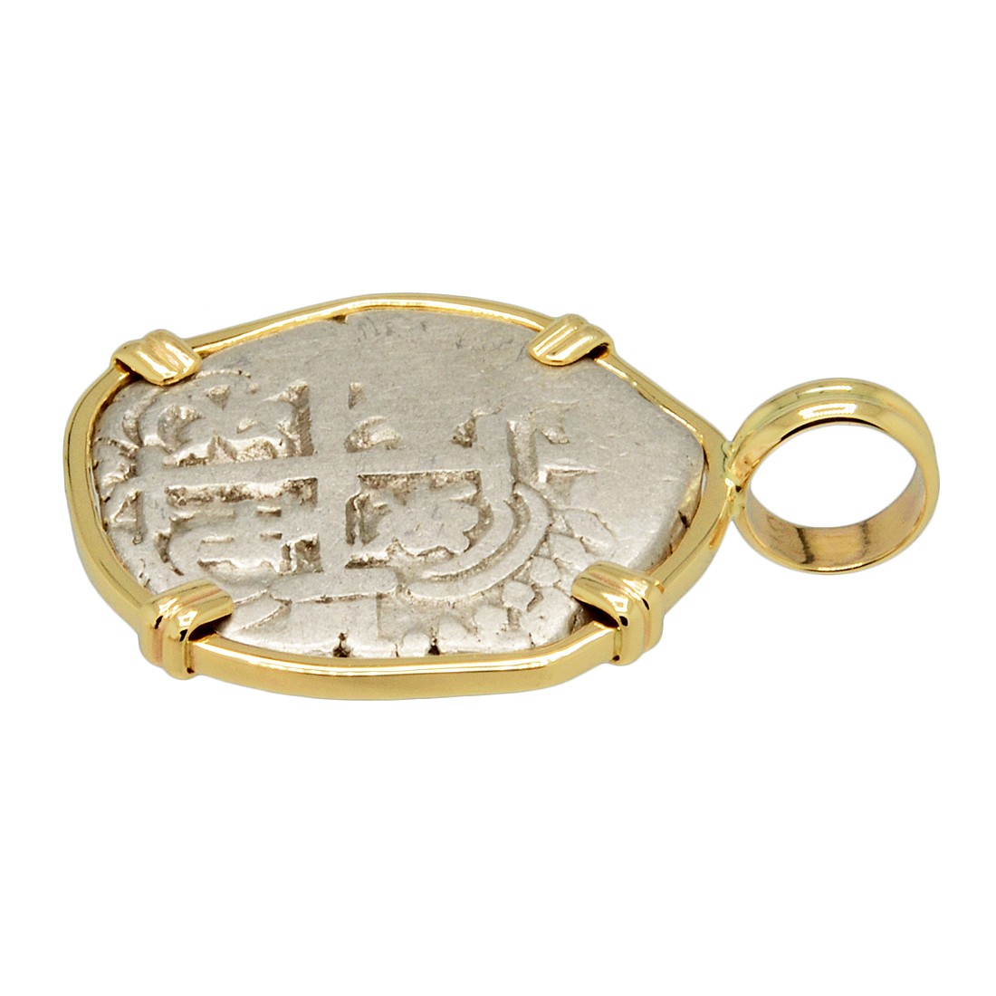 The obverse side of this coin features a Jerusalem cross with castles and lions in the quarters and the reverse shows the Pillars of Hercules with the date, mintmark and assayer. Minted in five denominations in silver, the largest was the eight reales, famous in the colonies as a “piece of eight.” Spanish coins, known as "cobs", that circulated in this epic era were hand struck from dies and cut to weight, making each a one-of-a-kind piece of history.