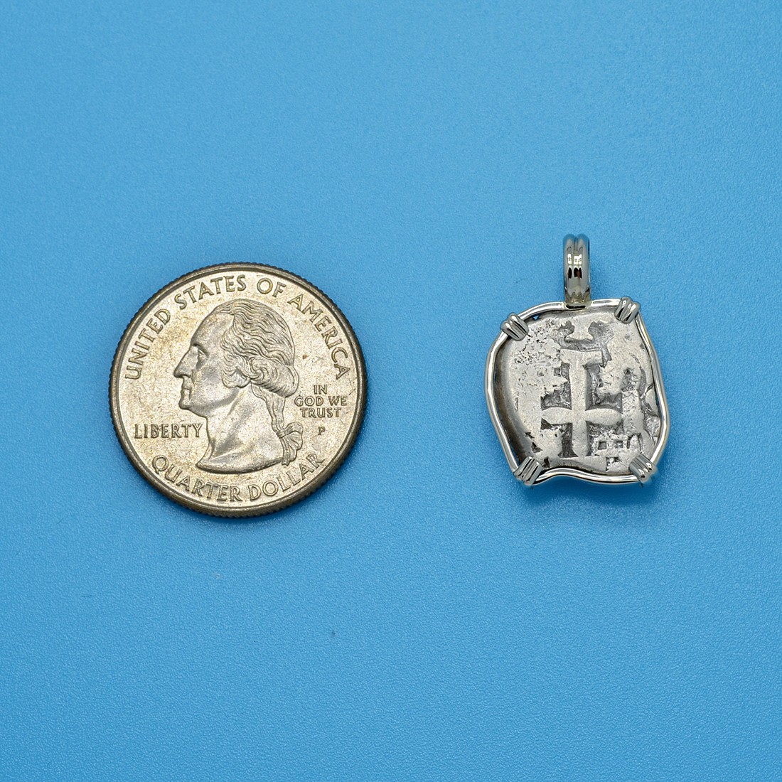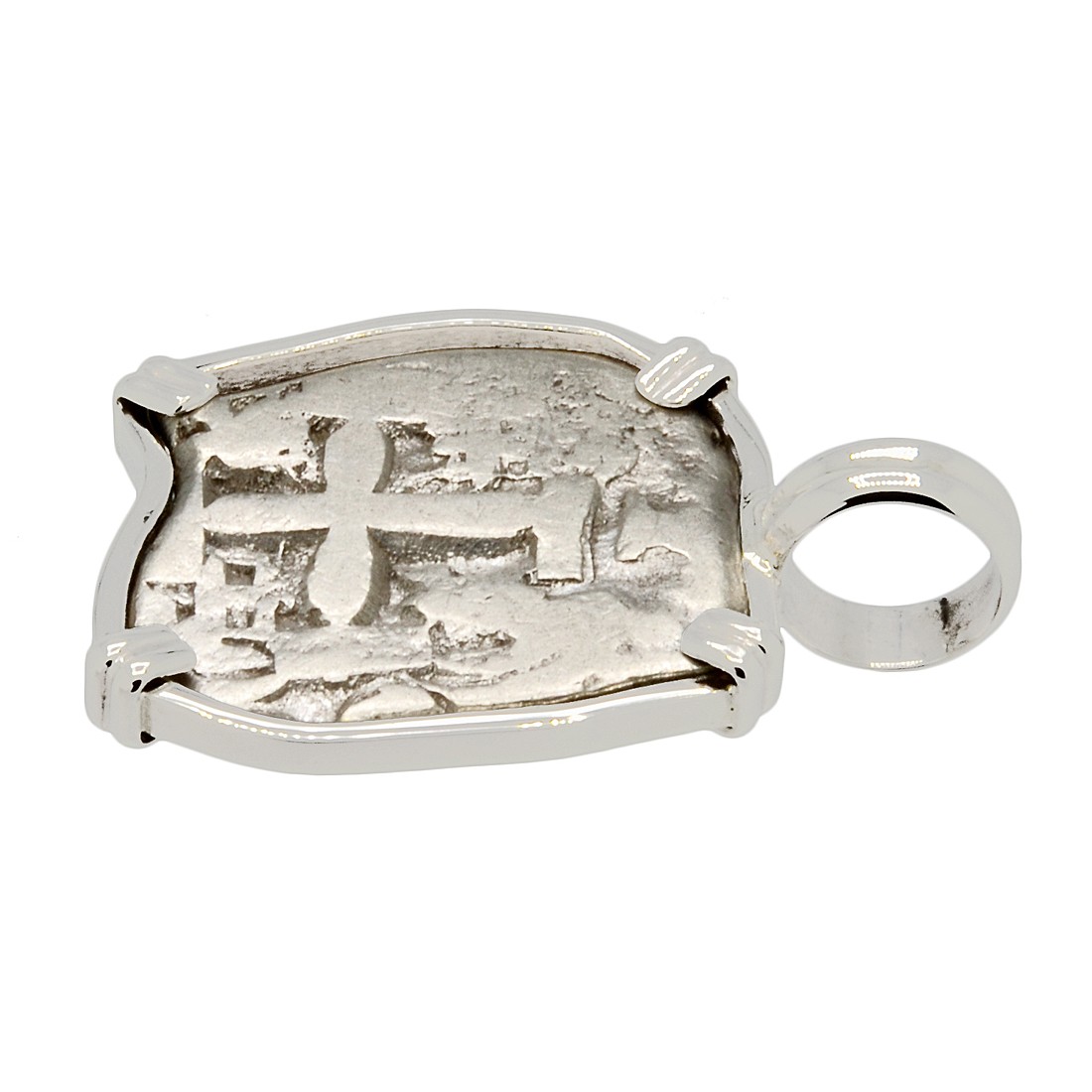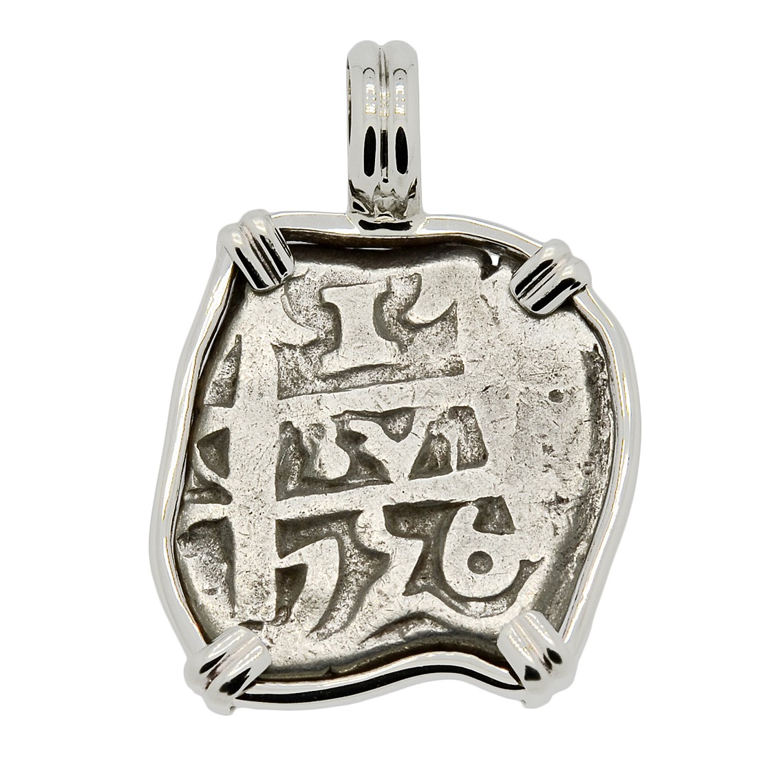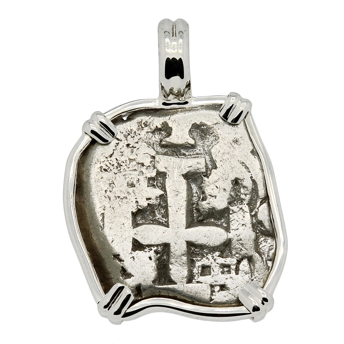 The obverse side of this coin features a Jerusalem cross with castles and lions in the quarters and the reverse depicts the Pillars of Hercules with the date, mintmark and assayer. Minted in five denominations in silver, the largest was the eight reales, famous in the colonies as a “piece of eight.” Spanish coins, known as "cobs", that circulated in this epic era were hand struck from dies and cut to weight, making each a one-of-a-kind piece of history.