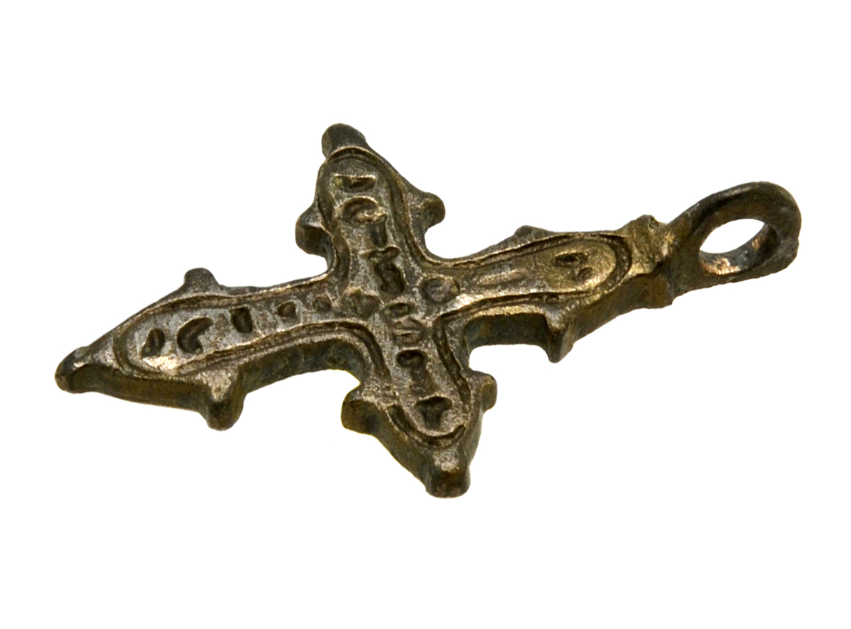 Over the centuries, the Byzantines, who still referred to themselves as Romans, fought to shield Europe from Muslim expansion and they also preserved much of the literary works and scientific knowledge of ancient Greece and Rome. The Empire was one of the most powerful economic, cultural and military forces in Europe and Asia Minor, existing for more than 1,000 years until 1453. This one-of-a-kind bronze cross was surely worn by an Eastern Roman citizen as a statement of faith during this amazing age of early Christendom.