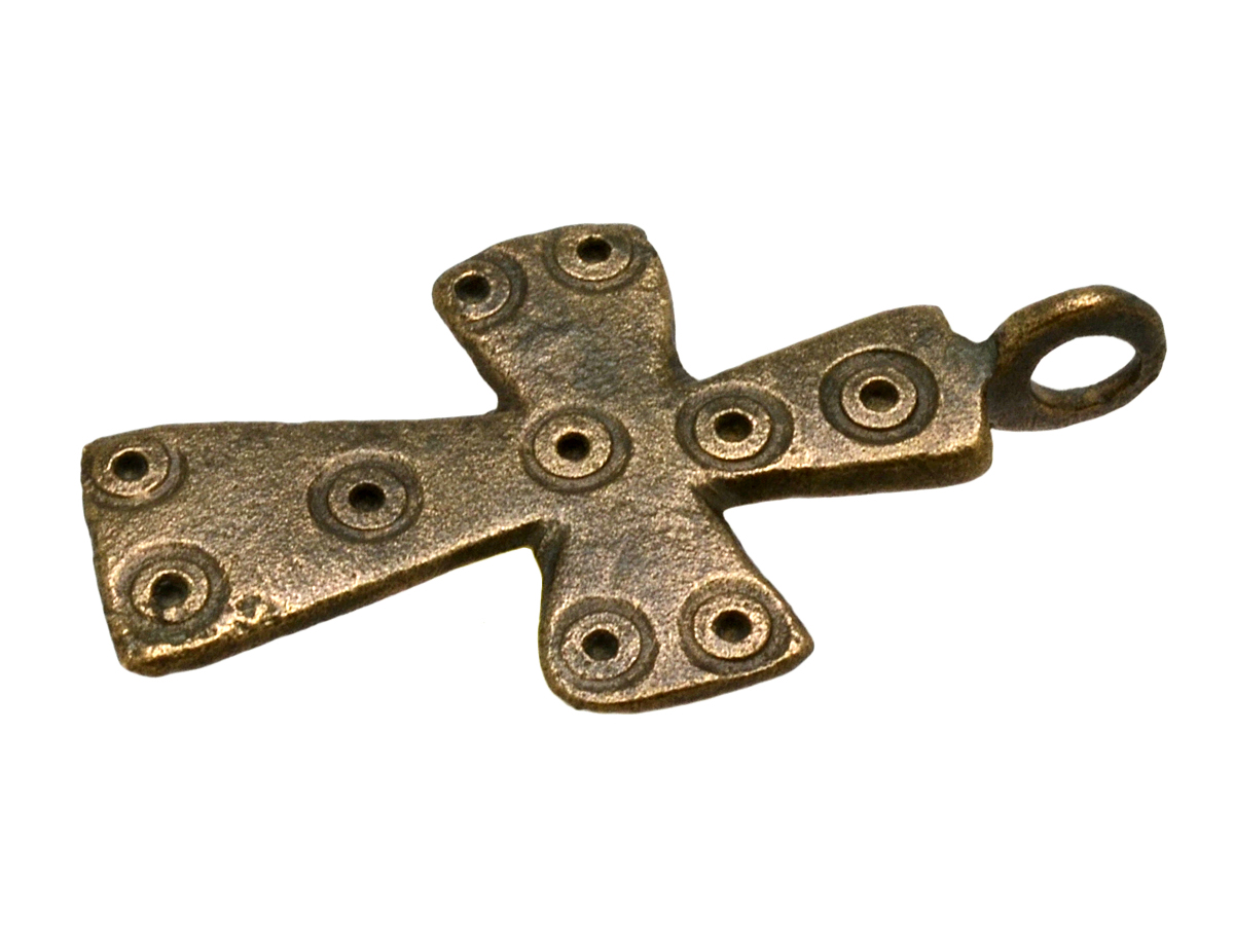 Over the centuries, the Byzantines, who still referred to themselves as Romans, fought to shield Europe from Muslim expansion and they also preserved much of the literary works and scientific knowledge of ancient Greece and Rome. The Empire was one of the most powerful economic, cultural and military forces in Europe and Asia Minor, existing for more than 1,000 years until 1453. This one-of-a-kind bronze cross was surely worn by an Eastern Roman citizen as a statement of faith during this amazing age of early Christendom.