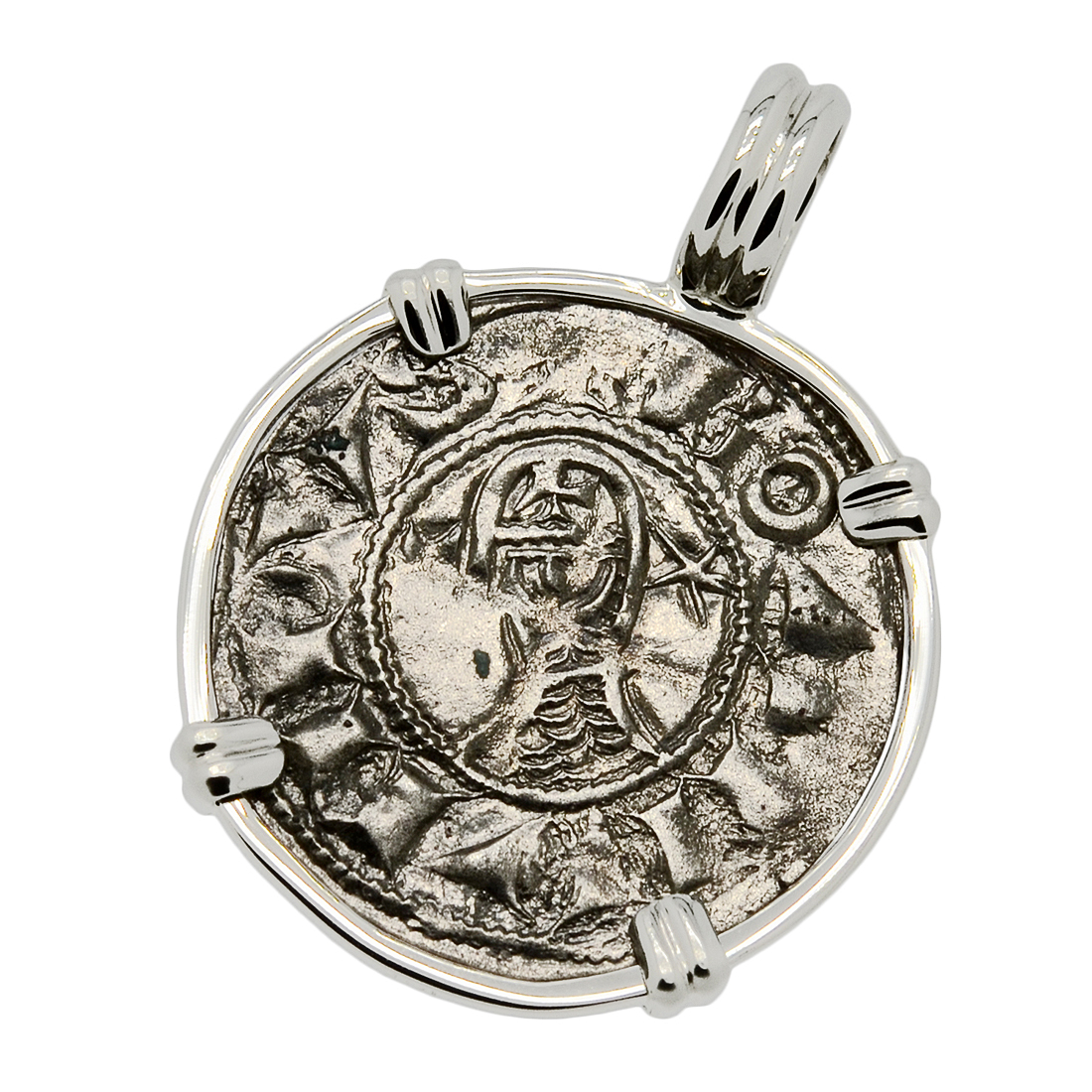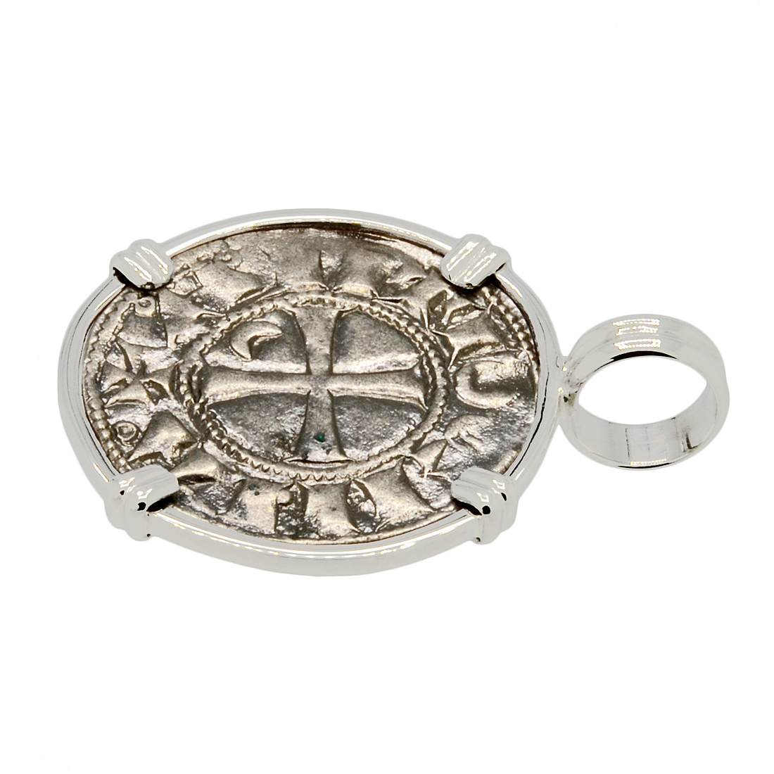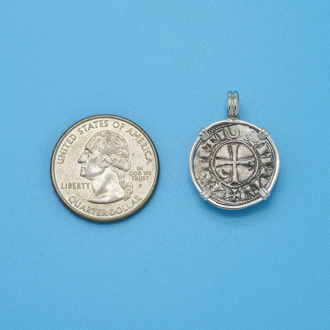 • Silver Denier Coin in 14k White Gold Pendant, Weight 2.25g