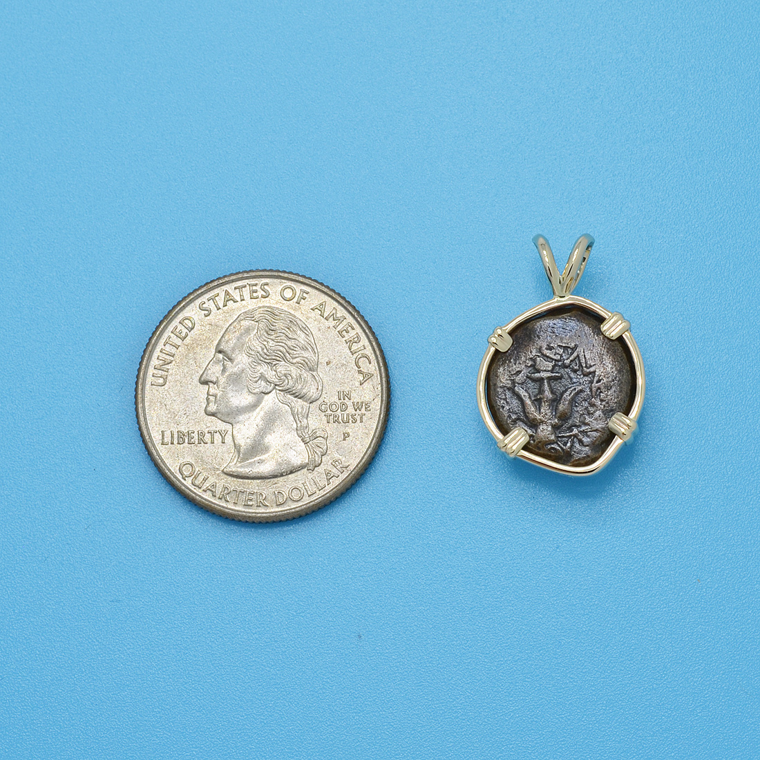• Bronze Prutah Coin in 14k Gold Pendant, Weight 3.2g