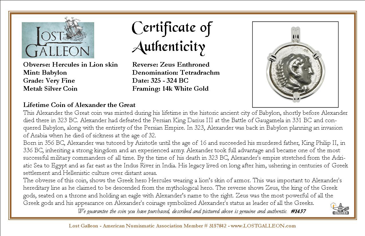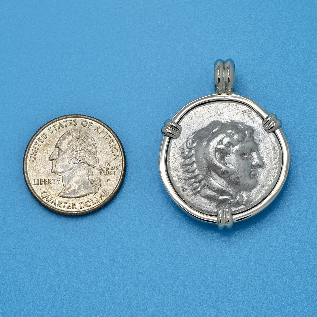 This Alexander the Great coin was minted during his lifetime in the historic ancient city of Babylon, shortly before Alexander died there in 323 BC. Alexander had defeated the Persian King Darius III at the Battle of Gaugamela in 331 BC and conquered Babylon, along with the entirety of the Persian Empire. In 323, Alexander was back in Babylon planning an invasion of Arabia when he died of sickness at the age of 32.