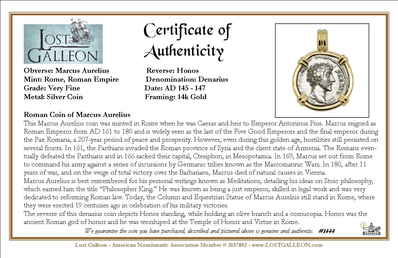 This Marcus Aurelius coin was minted in Rome when he was Caesar and heir to Emperor Antoninus Pius. Marcus reigned as Roman Emperor from AD 161 to 180 and is widely seen as the last of the Five Good Emperors and the final emperor during the Pax Romana, a 207-year period of peace and prosperity. However, even during this golden age, hostilities still persisted on several fronts. In 161, the Parthians invaded the Roman province of Syria and the client state of Armenia. The Romans eventually defeated the Parthians and in 166 sacked their capital, Ctesiphon, in Mesopotamia. In 169, Marcus set out from Rome to command his army against a series of incursions by Germanic tribes known as the Marcomannic Wars. In 180, after 11 years of war, and on the verge of total victory over the Barbarians, Marcus died of natural causes in Vienna.