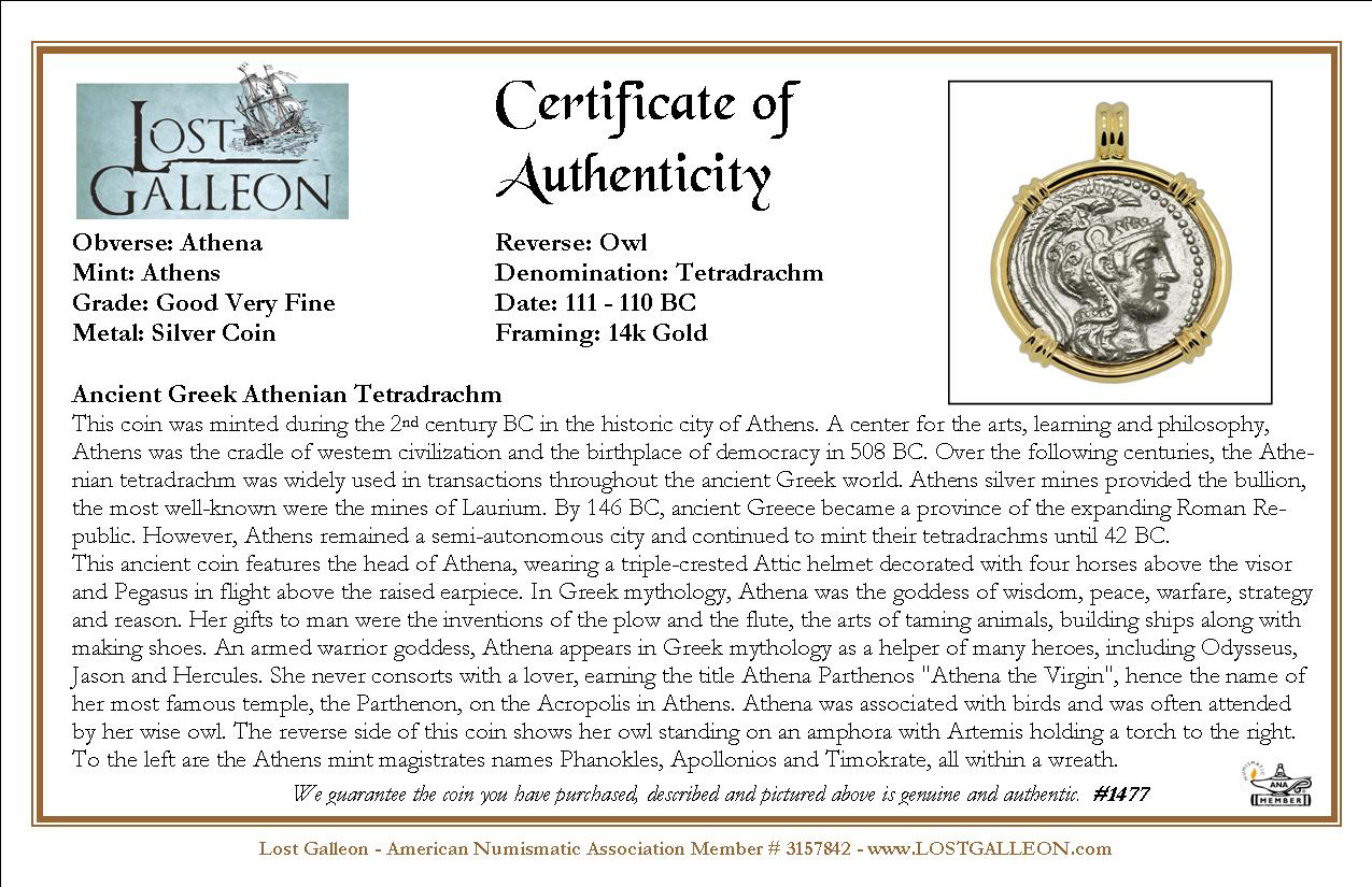 This coin was minted during the 2nd century BC in the historic city of Athens. A center for the arts, learning and philosophy, Athens was the cradle of western civilization and the birthplace of democracy in 508 BC. Over the following centuries, the Athenian tetradrachm was widely used in transactions throughout the ancient Greek world. Athens silver mines provided the bullion, the most well-known were the mines of Laurium. By 146 BC, ancient Greece became a province of the expanding Roman Republic. However, Athens remained a semi-autonomous city and continued to mint their tetradrachms until 42 BC.