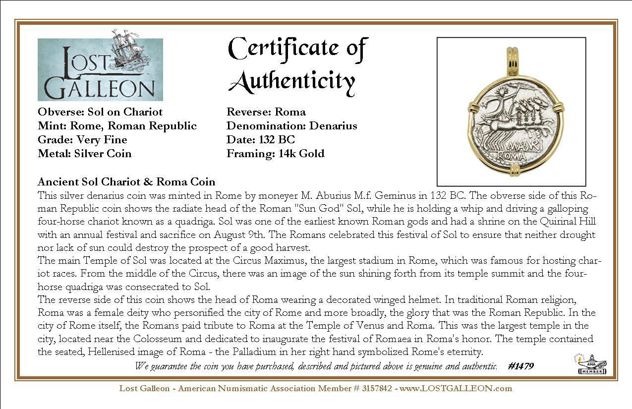 SOLD Sol Chariot and Roma Denarius Pendant. Please Explore Our Roman Category For Similar Items.