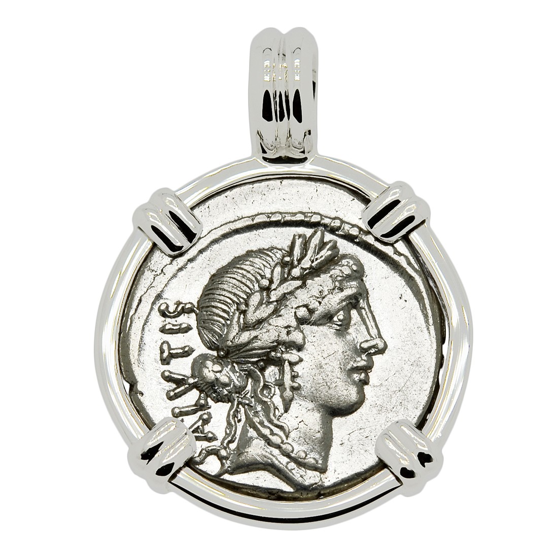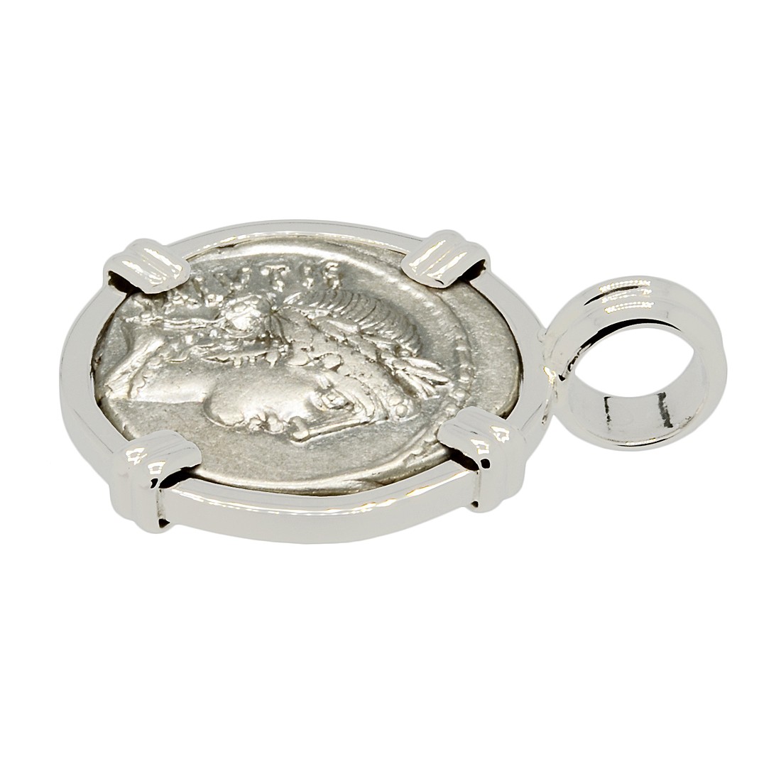 • Silver Denarius Coin in 14k White Gold Pendant, Weight 7.1g