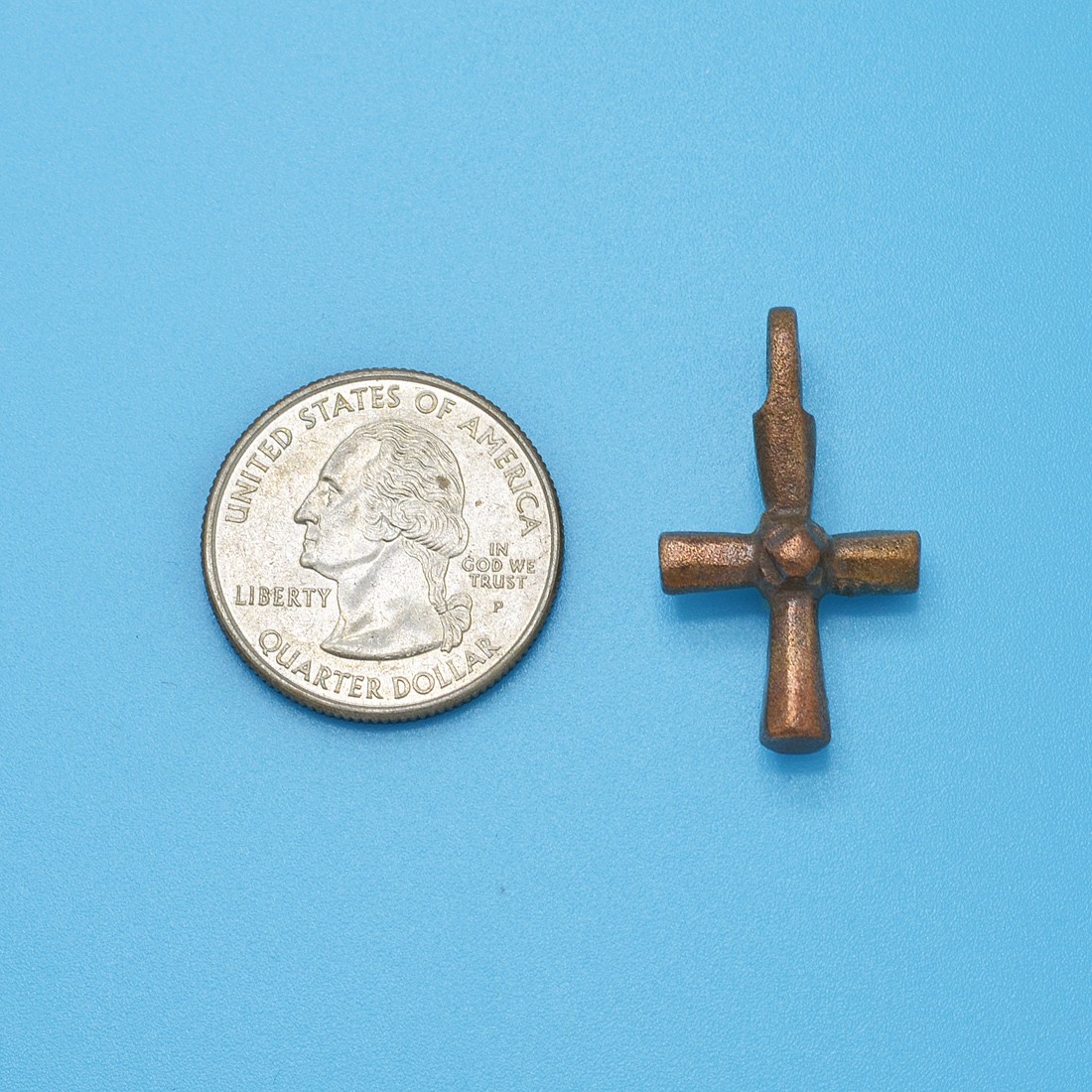 This bronze cross was hand forged during the early Middle Ages in the cradle of Christianity, the Byzantine Empire. In AD 324, the first Christian Roman Emperor Constantine the Great transferred the Eastern Roman Empire capital to Byzantium, which became Constantinople, known as "New Rome." The Byzantine Empire became centered on the capital of Constantinople and was ruled by emperors in direct succession to the ancient Roman Emperors. With the eventual decline of Rome, the Church of Constantinople became the richest and most influential center of the Christian world.