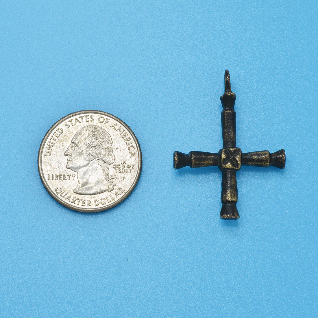 Over the centuries, the Byzantines, who still referred to themselves as Romans, fought to shield Europe from Muslim expansion and they also preserved much of the literary works and scientific knowledge of ancient Greece and Rome. The Byzantine Empire was one of the most powerful economic, cultural and military forces in Europe and Asia Minor, existing for more than 1,000 years until 1453. This one-of-a-kind bronze cross was surely worn by an Eastern Roman citizen as a statement of faith during this amazing age of early Christendom.