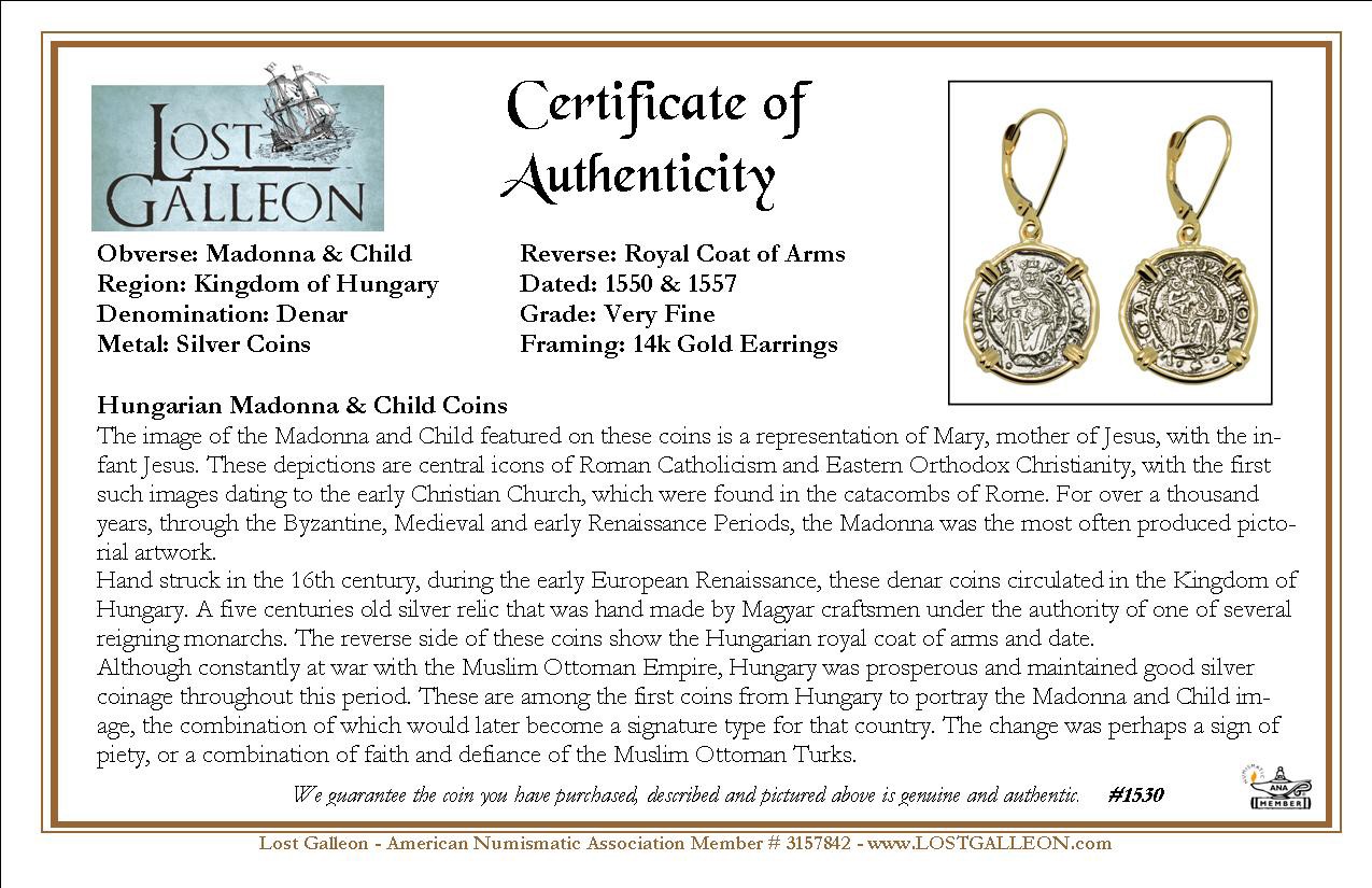 Hand struck in the 16th century, during the early European Renaissance, these denar coins circulated in the Kingdom of Hungary. A five centuries old silver relic that was hand made by Magyar craftsmen under the authority of one of several reigning monarchs. The reverse side of these coins show the Hungarian royal coat of arms and date.