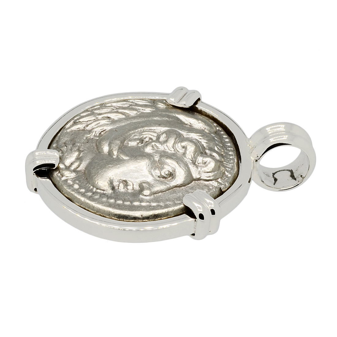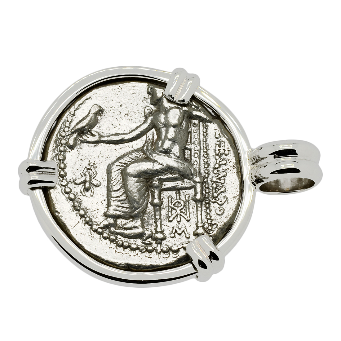 The obverse of this coin, shows the Greek hero Hercules wearing a lion’s skin of armor. This was important to Alexander's hereditary line as he claimed to be descended from the mythological hero. The reverse shows Zeus, the king of the Greek gods, seated on a throne and holding an eagle with Alexander’s name to the right. Zeus was the most powerful of all the Greek gods and his appearance on Alexander's coinage symbolized Alexander's status as leader of all the Greeks.