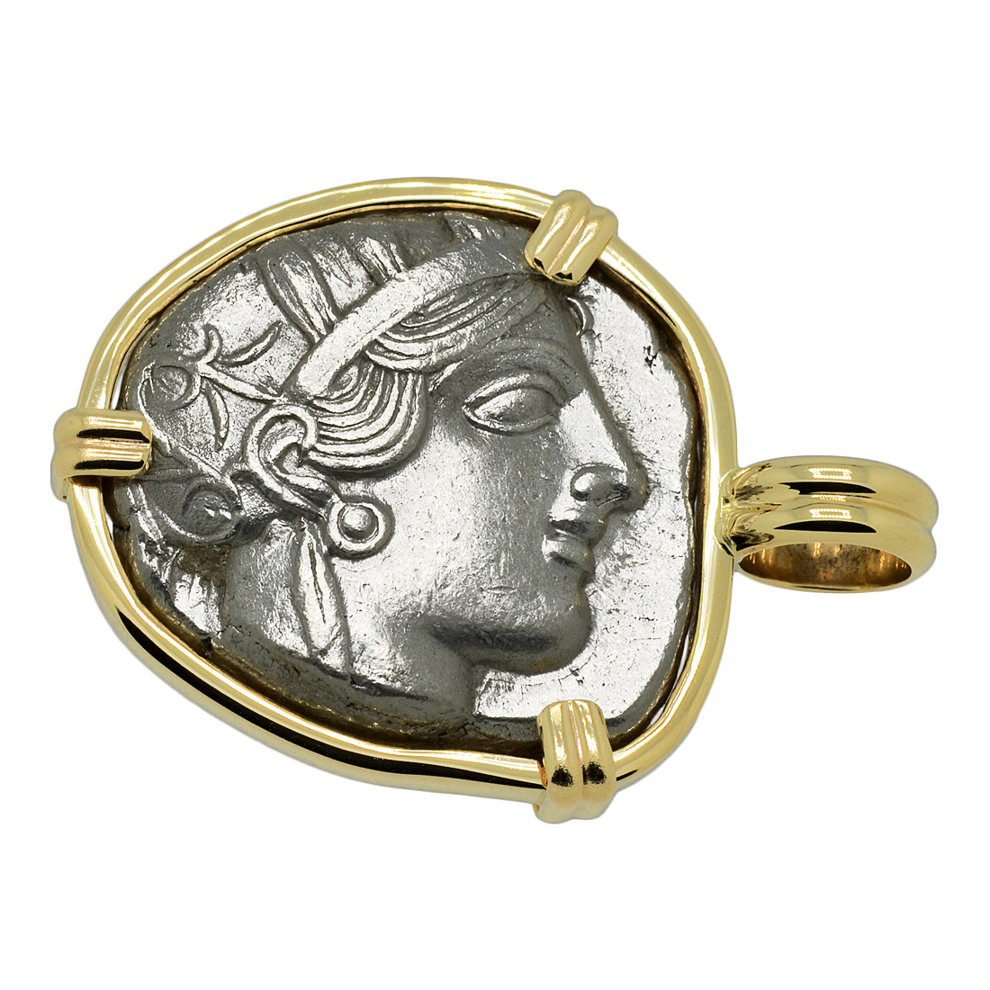 • Silver Tetradrachm Coin in 14k Gold Pendant, Weight 22g