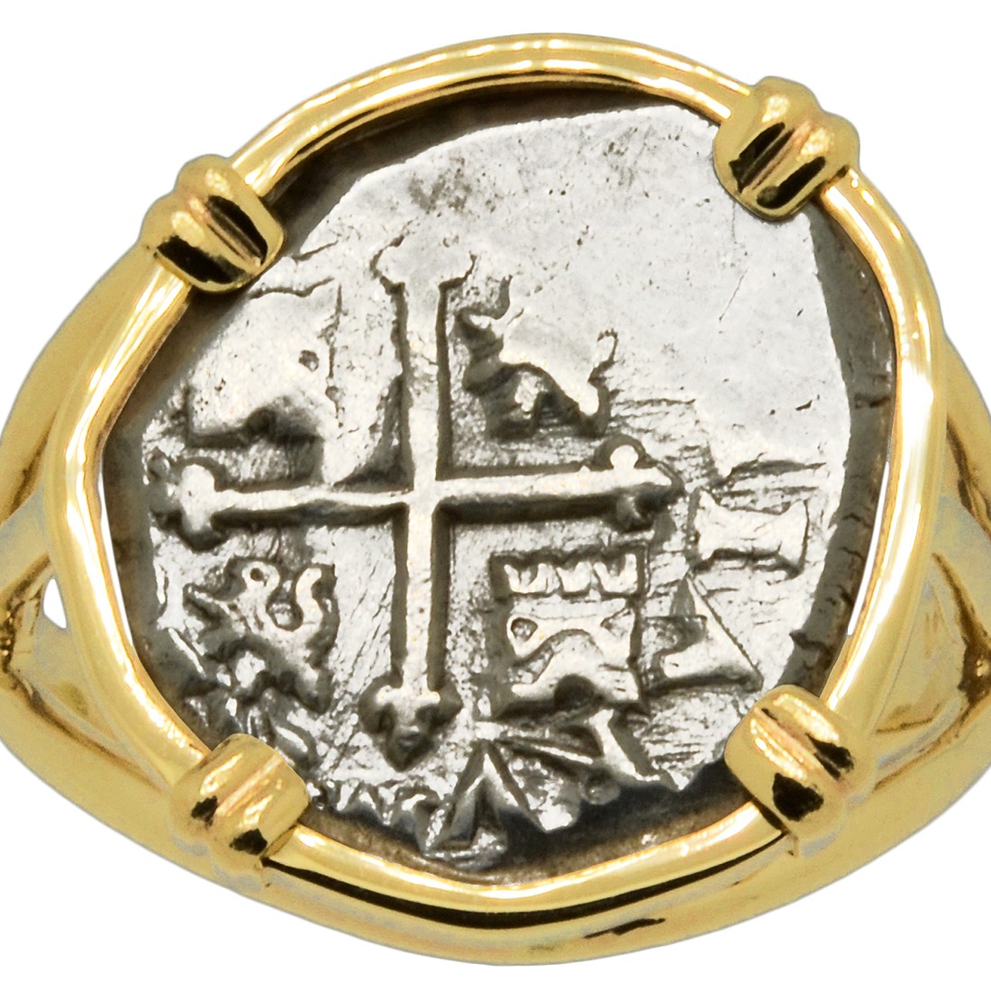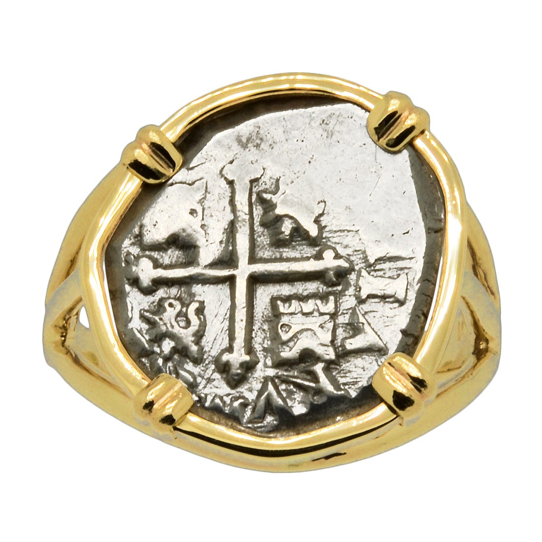 Spanish coins, known as "cobs", that circulated in this epic era were hand struck from dies and cut to weight. Minted in five denominations in silver, the largest was the eight reales, famous in the colonies and among pirates as a “Piece of Eight.” The other denominations were four reales, two reales, one real and one-half real. Cob coinage with their unusual shapes are all unique and each is a one-of-a-kind piece of history.