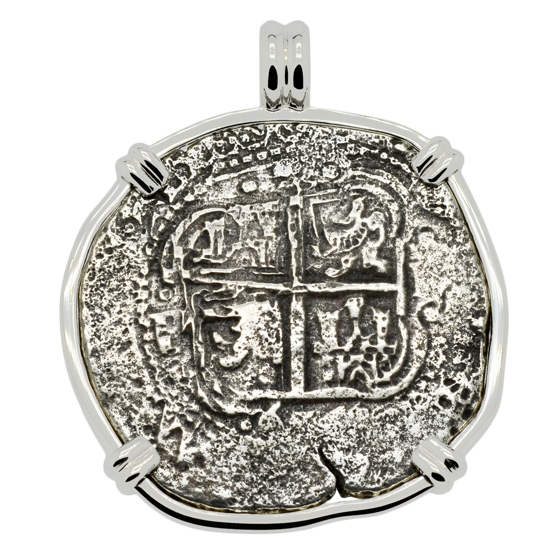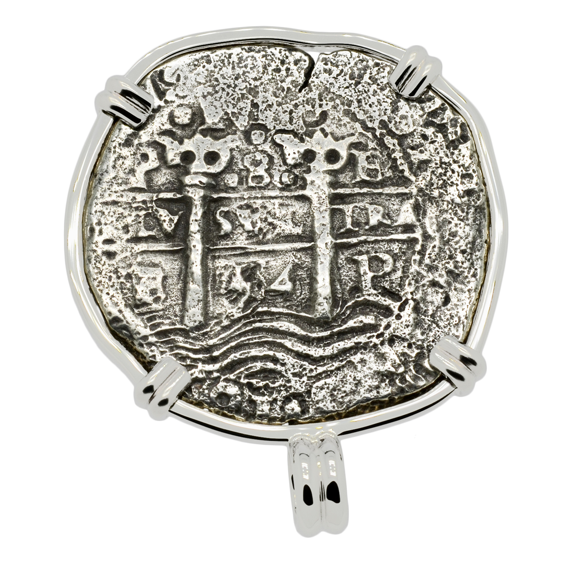 This is a genuine silver coin that was salvaged from the treasure ship Jesus Maria de la Limpia Concepcion. In 1654, she was the largest vessel yet built for King Philip IV at 122 feet with 60 cannons and was affectionately referred to as the "La Capitana", the flagship of the Spanish South Sea Armada. Commanded by captain Don Francisco de Sosa, La Capitana set sail with a registered cargo of 2,212 silver bars and 216 chests of silver coins.