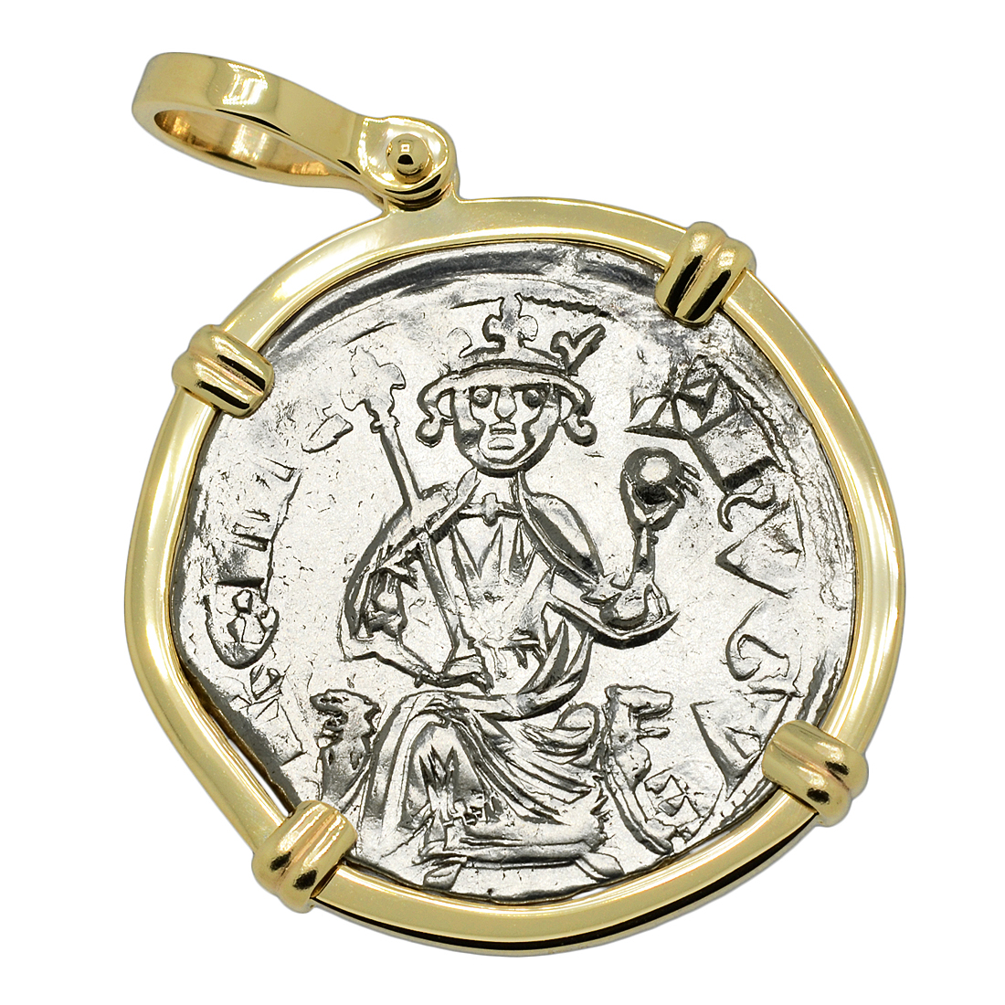 This coin was minted seven centuries ago on the Mediterranean Island and Crusader Kingdom of Cyprus. The island was conquered by King Richard the Lionheart of England during the 3rd Crusade in 1191. Richard then sold Cyprus to the Knights Templar, but after an uprising of the Cypriots in 1192, Richard installed the French House of Lusignan, who then ruled the Kingdom until 1489. As a member of the House of Lusignan, Hugh IV ruled the Crusader Kingdom of Cyprus from 1324 to 1358 and was nominally King of Jerusalem until his death in 1359.
