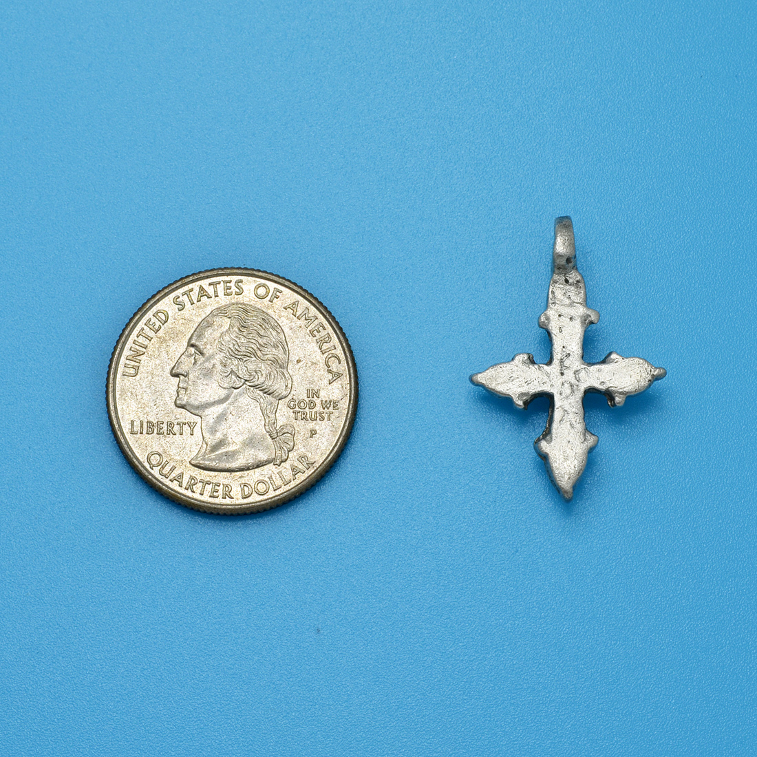 This silver cross was hand forged during the Middle Ages in the cradle of Christianity, the Byzantine Empire. Silver crosses were rare compared to bronze crosses during this time period, so they were normally worn by clergy or people of the upper classes.