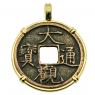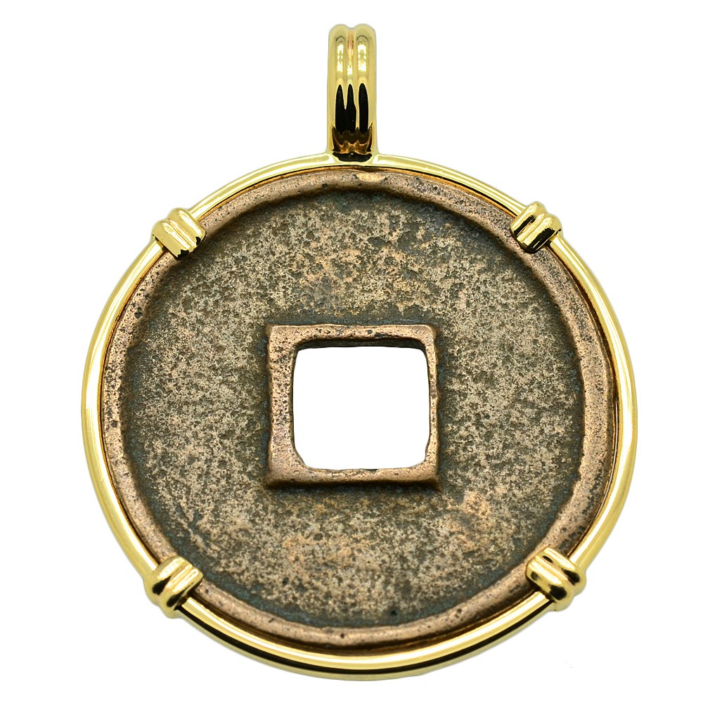 • Bronze Cash Coin in 14k Gold Pendant, Weight 4.8g