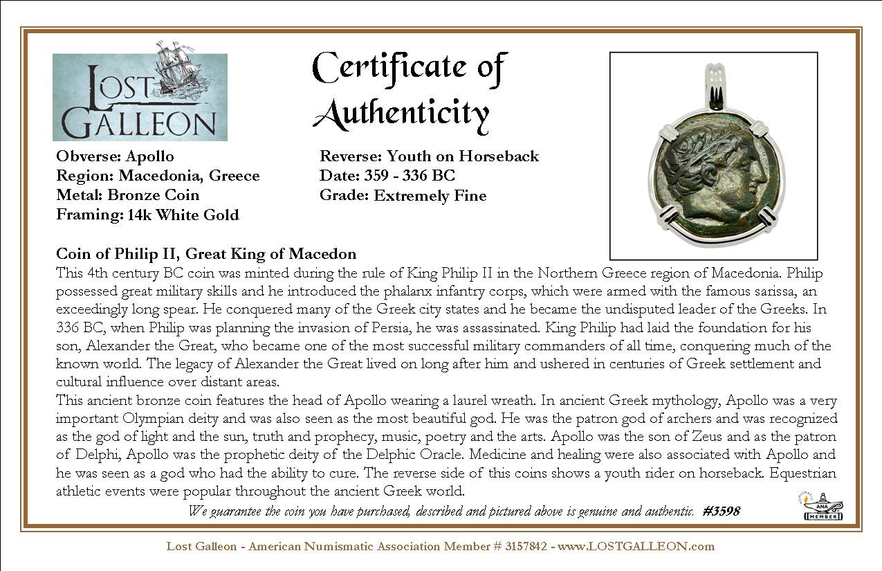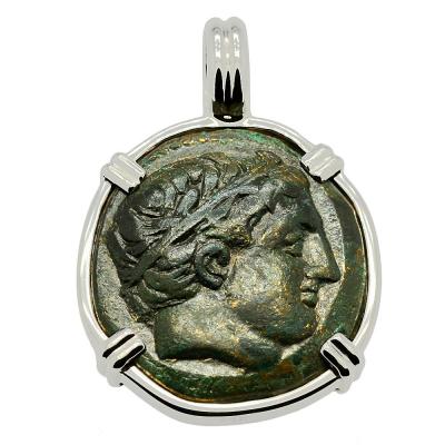 This 4th century BC coin was minted during the rule of King Philip II in the Northern Greece region of Macedonia. Philip possessed great military skills and he introduced the phalanx infantry corps, which were armed with the famous sarissa, an exceedingly long spear. He conquered many of the Greek city states and he became the undisputed leader of the Greeks. In 336 BC, when Philip was planning the invasion of Persia, he was assassinated. King Philip had laid the foundation for his son, Alexander the Great, who became one of the most successful military commanders of all time, conquering much of the known world. The legacy of Alexander the Great lived on long after him and ushered in centuries of Greek settlement and cultural influence over distant areas.