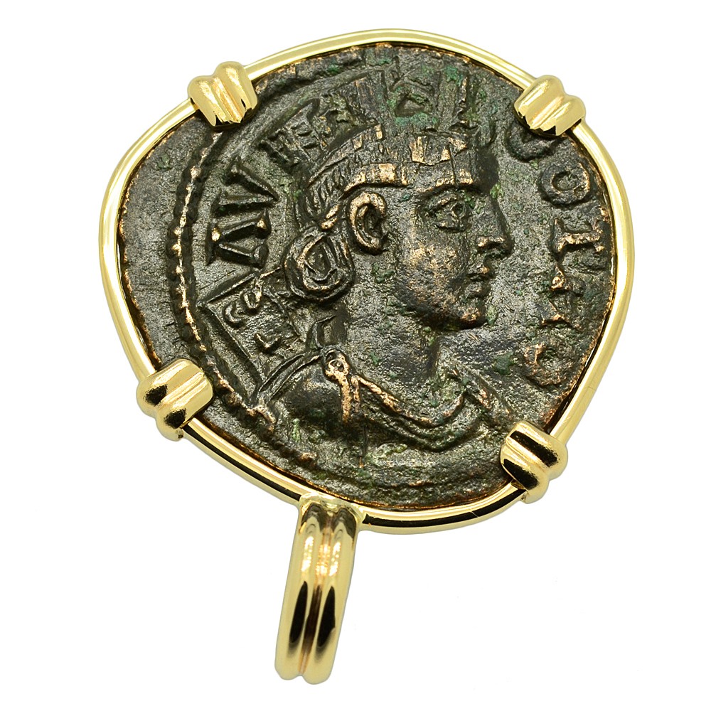 • Bronze Coin in 14k Gold Pendant, Weight 6.8g