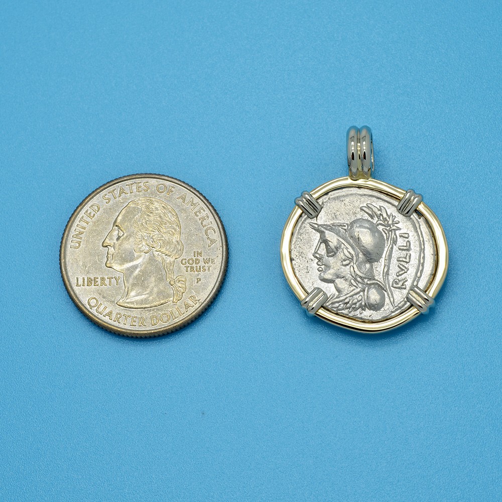 • Silver Denarius Coin in 14k White and Yellow Gold Pendant, Weight 7g