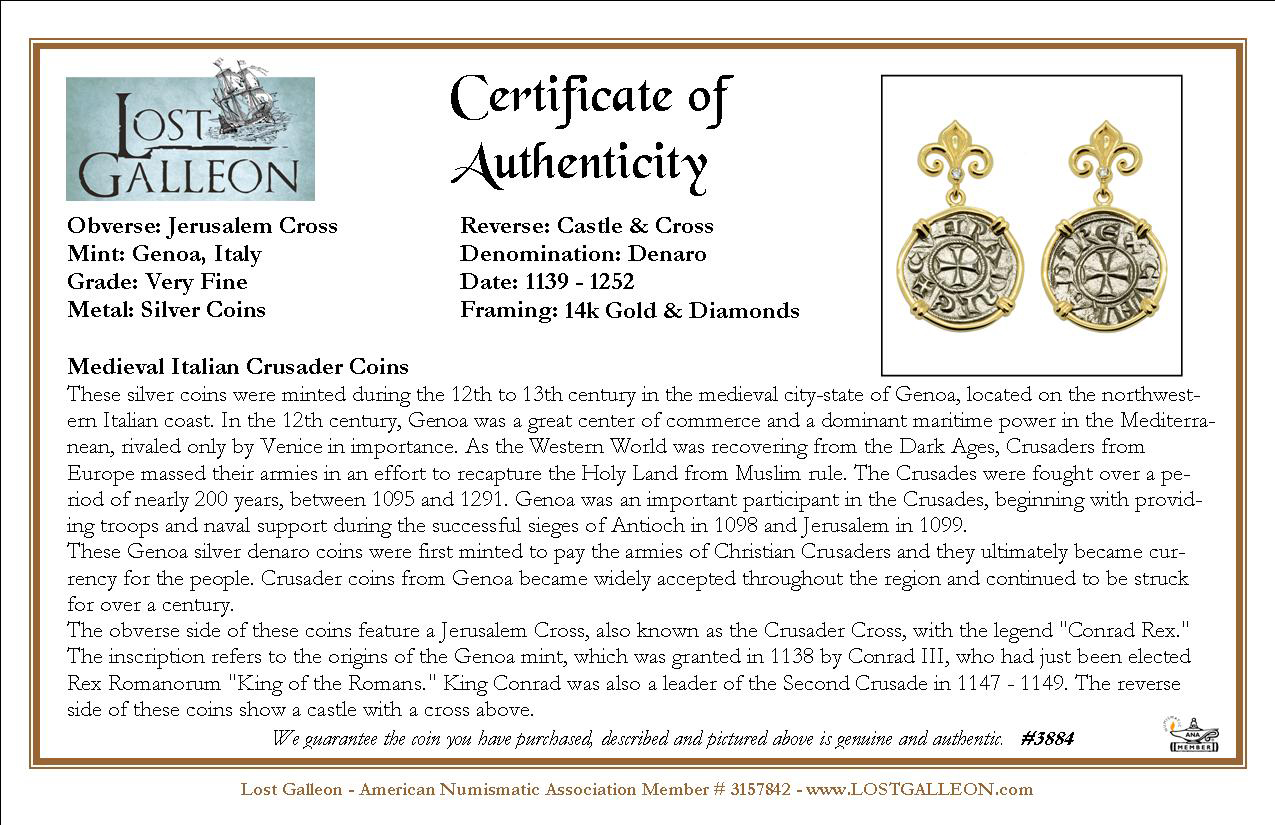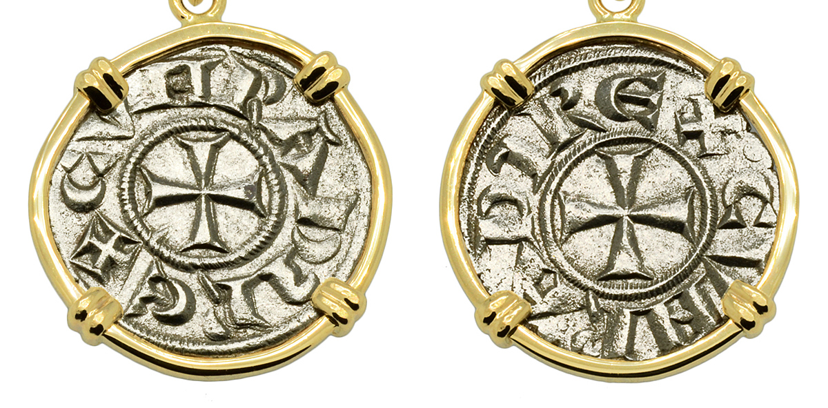 These Genoa silver denaro coins were first minted to pay the armies of Christian Crusaders and they ultimately became currency for the people. Crusader coins from Genoa became widely accepted throughout the region and continued to be struck for over a century.