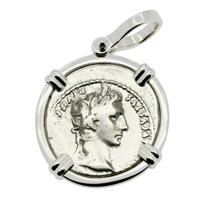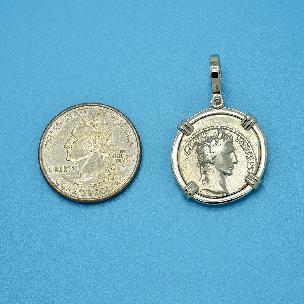 • Silver Denarius Coin in 14k White Gold Pendant, Weight 7.3g