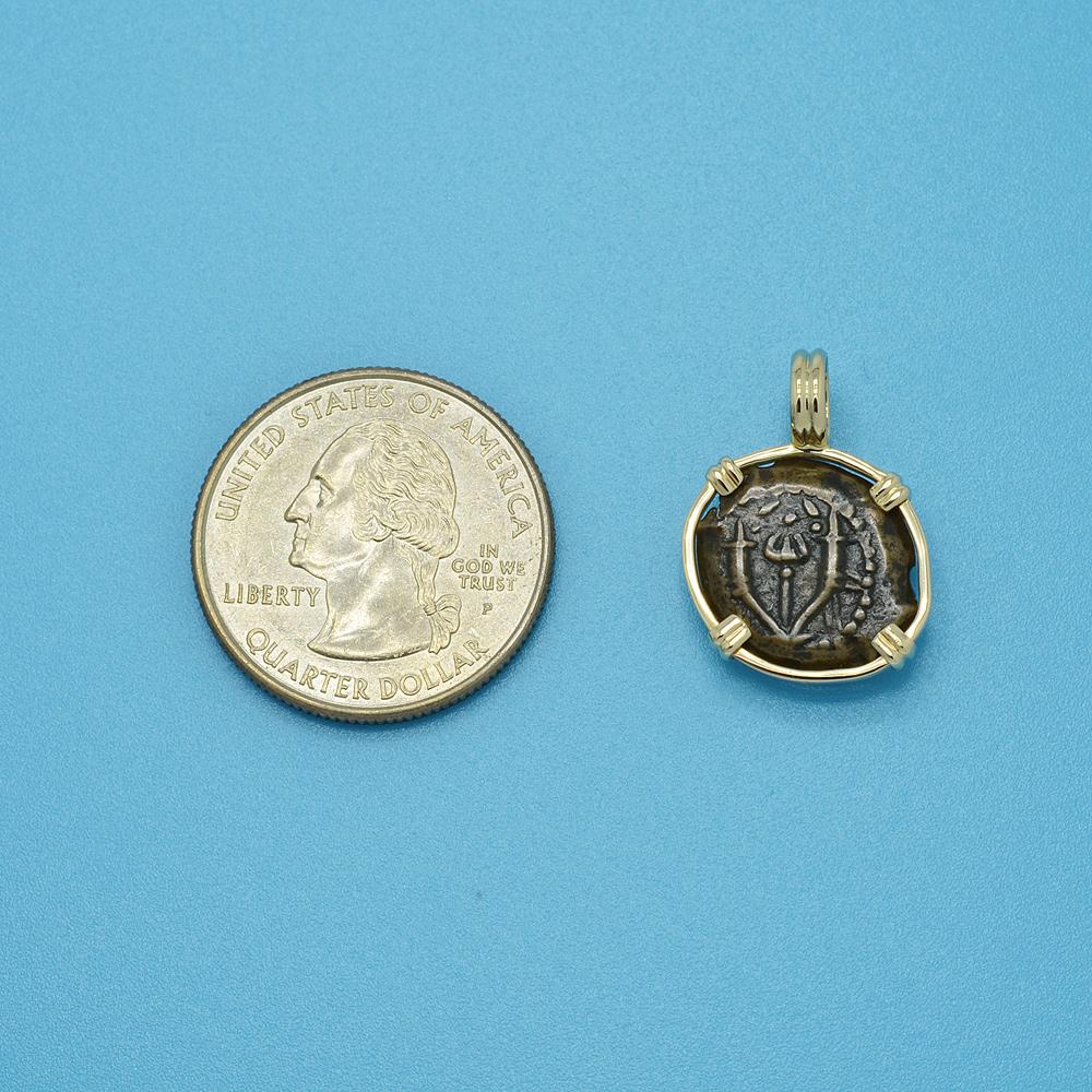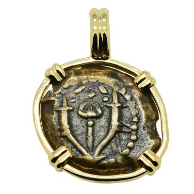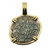 • Bronze Prutah Coin in 14k Gold Pendant, Weight 3.3g