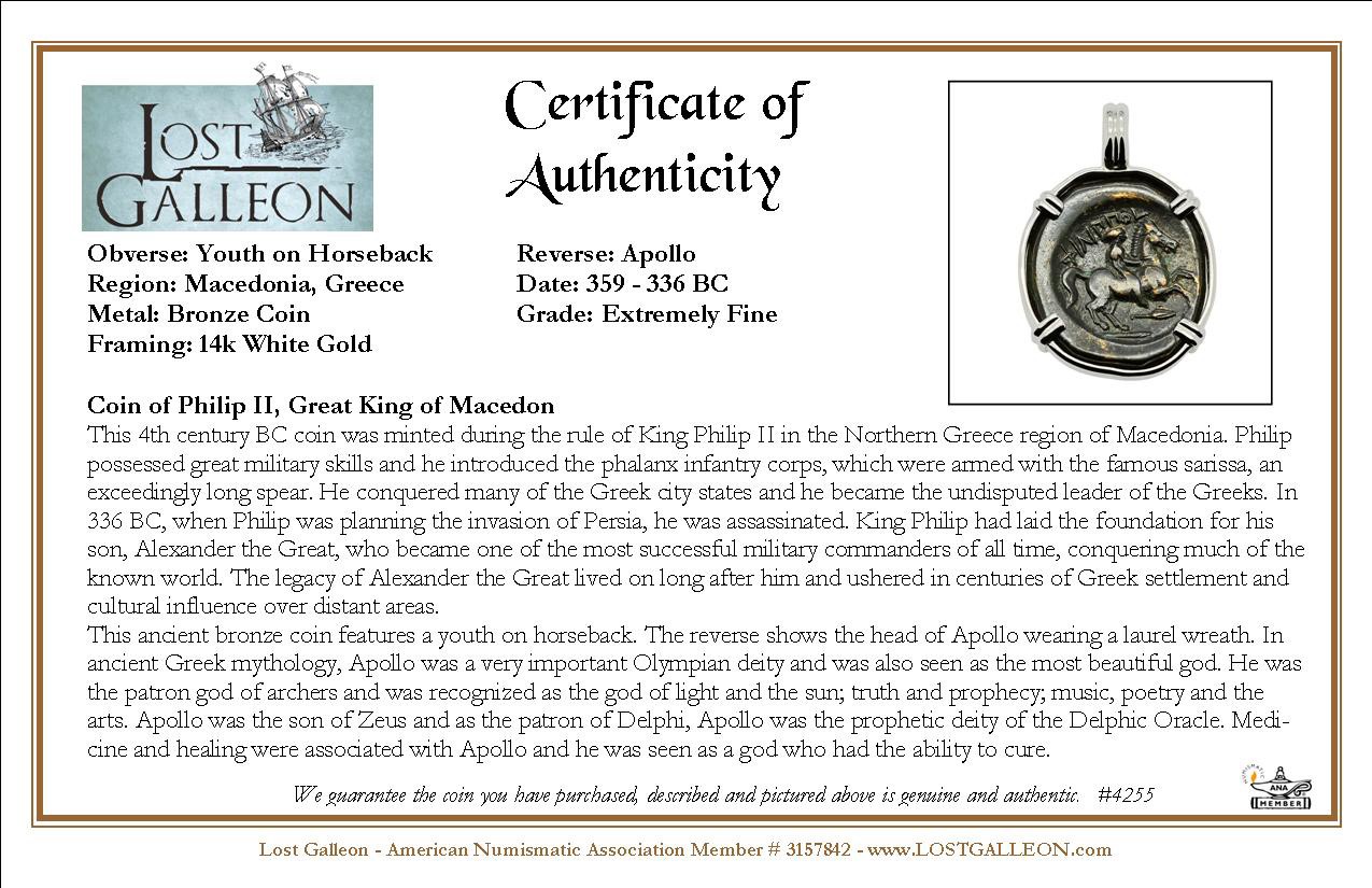 This 4th century BC coin was minted during the rule of King Philip II in the Northern Greece region of Macedonia. Philip possessed great military skills and he introduced the phalanx infantry corps, which were armed with the famous sarissa, an exceedingly long spear. He conquered many of the Greek city states and he became the undisputed leader of the Greeks. In 336 BC, when Philip was planning the invasion of Persia, he was assassinated. King Philip had laid the foundation for his son, Alexander the Great, who became one of the most successful military commanders of all time, conquering much of the known world. The legacy of Alexander the Great lived on long after him and ushered in centuries of Greek settlement and cultural influence over distant areas.